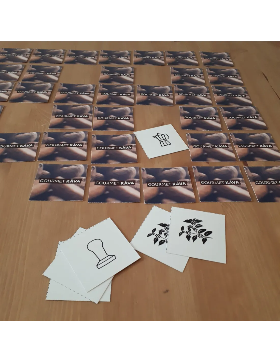 Popularna kartaška igra PEXESO s motivima kave i pribora za kavu . Još više uživajte u šalici kave s prijateljima uz hrpu pexesa!