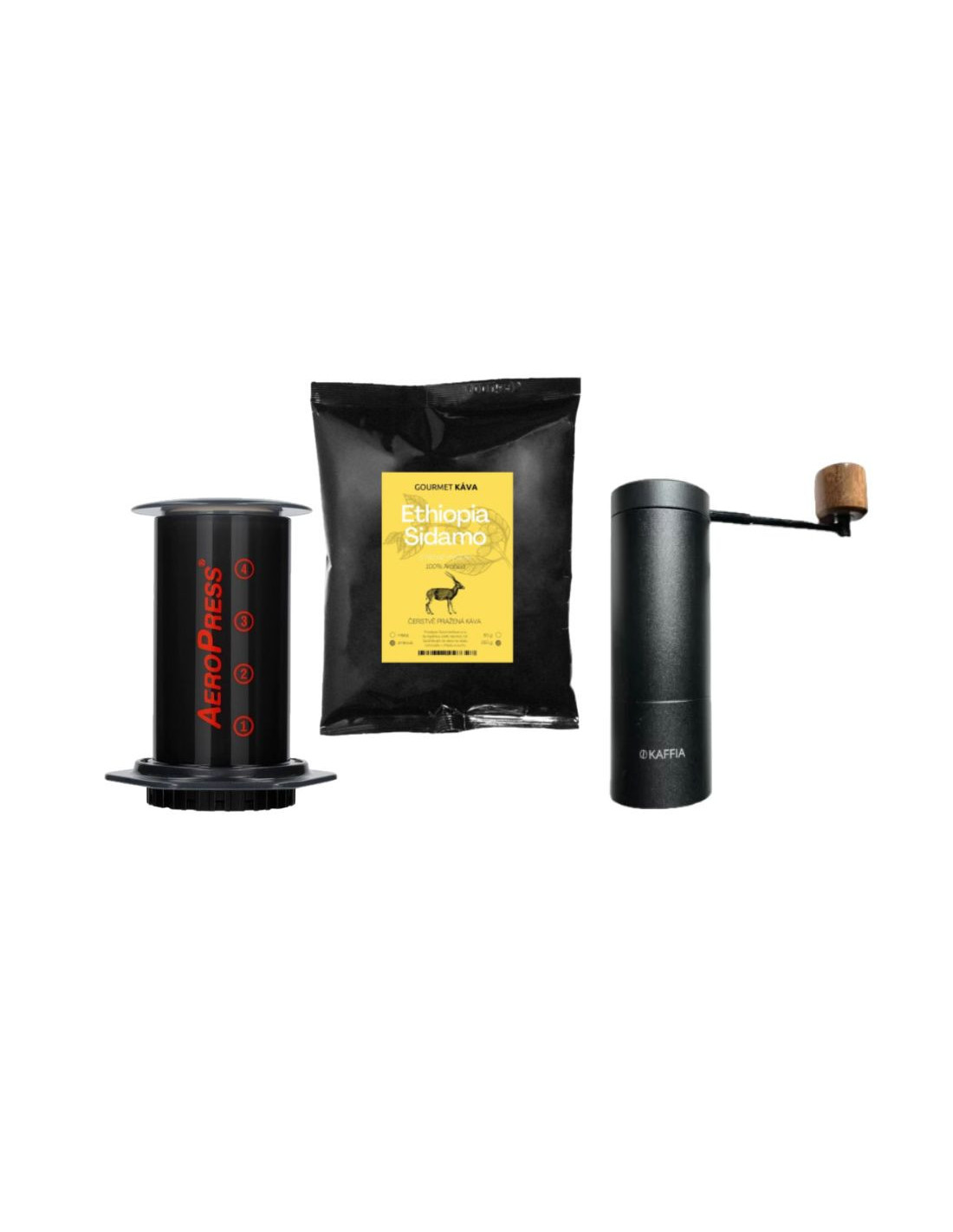 Svježa kava Etiopija Sidamo, Srednje pržena 250g, aparat za kavu Aeropress Aerobie i mlinac za kavu Kaffia Barista X kao trio popularan među putnicima, ali i ostalim ljubiteljima kave.