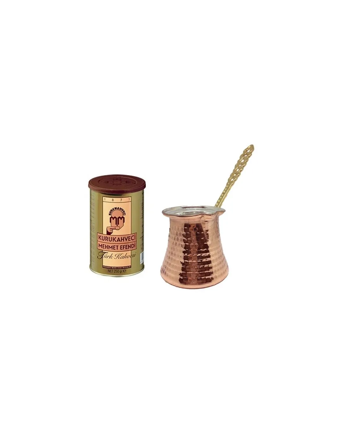 Prvoklasna turska svježe mljevena kava Efendi 250g i ručno izrađena džezva L (220-250ml) za tradicionalnu i autentičnu pripremu izvrsne turske kave.