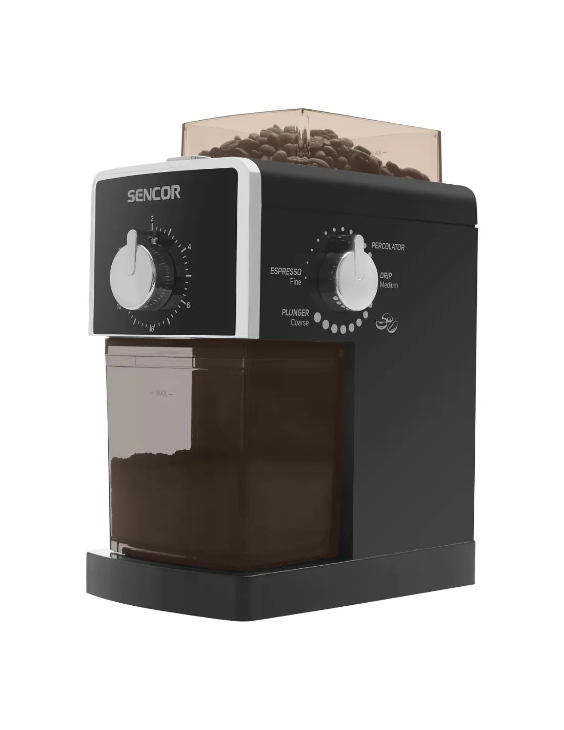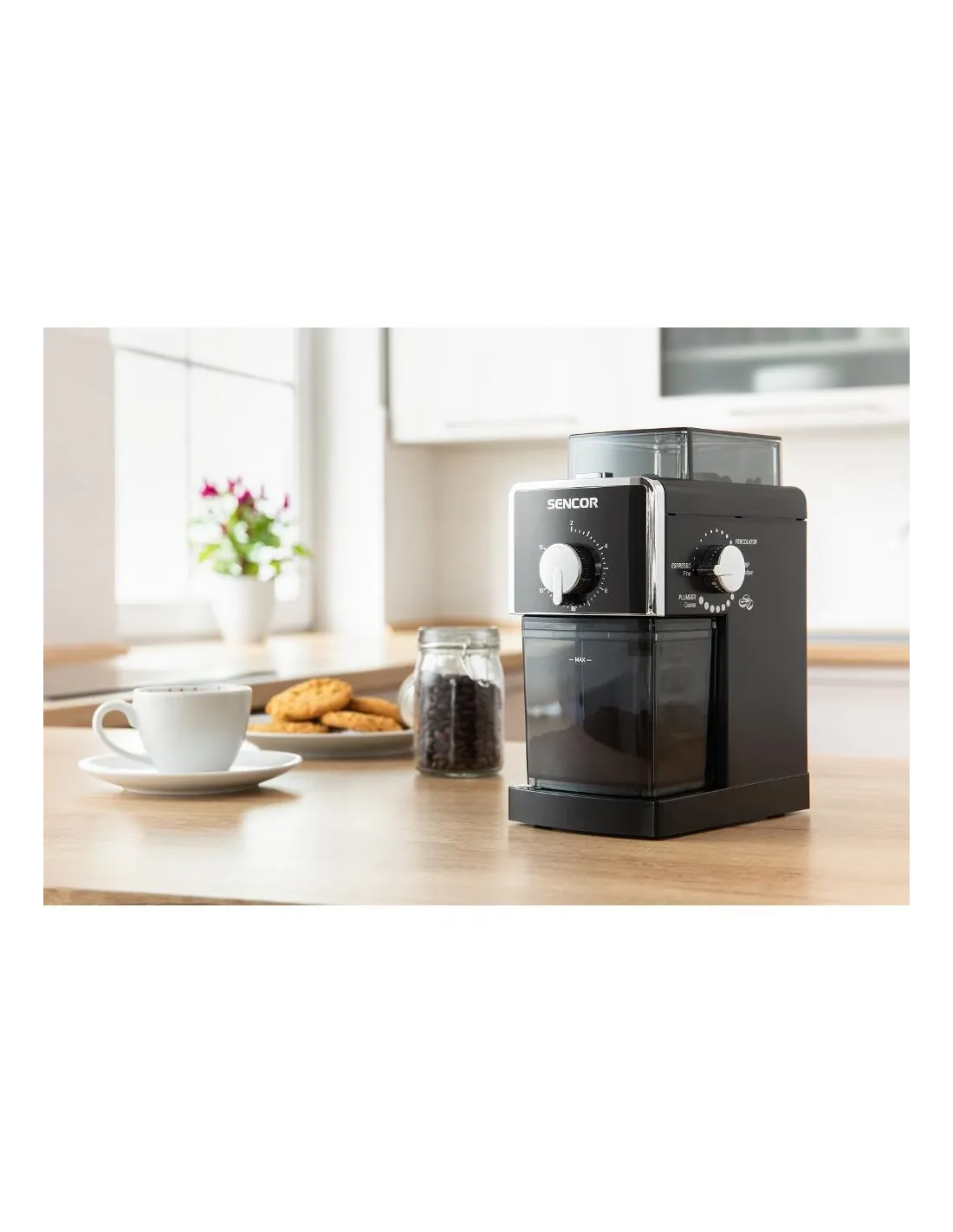 SENCOR SCG 5050BK Električni mlinac idealan je za sve koji žele uživati u svježe mljevenoj kavi s punom kontrolom nad gruboćom mljevenja, od espressa do French press-a.