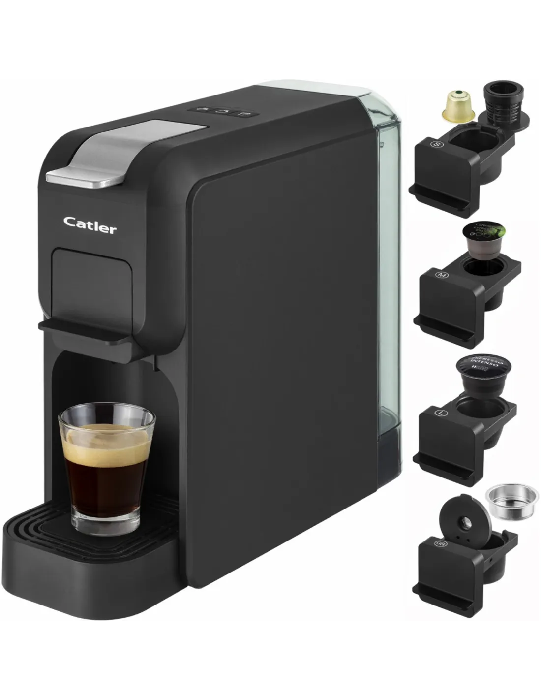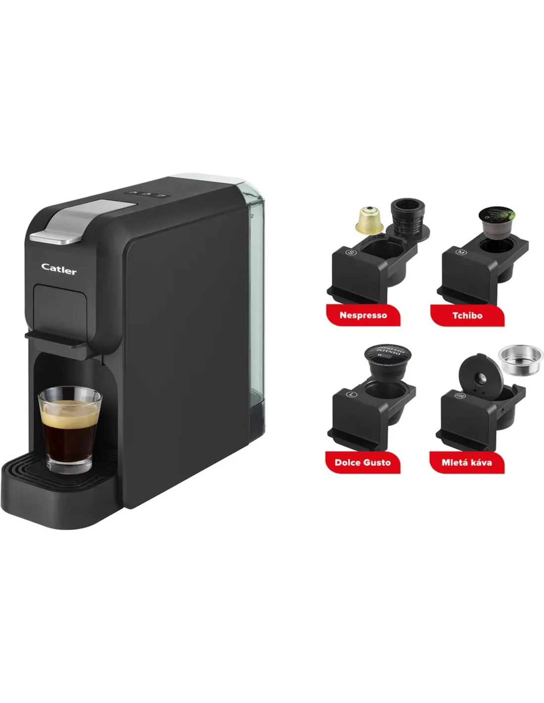Automatski espresso aparat s pritiskom od 15 bara u crnom minimalističkom dizajnu priprema kavu bogatog okusa, intenzivnog mirisa i nježne pjene. Kompatibilan je s Nespresso®, Tchibo, NESCAFÉ® Dolce Gusto® kapsulama kave i mljevenom kavom.