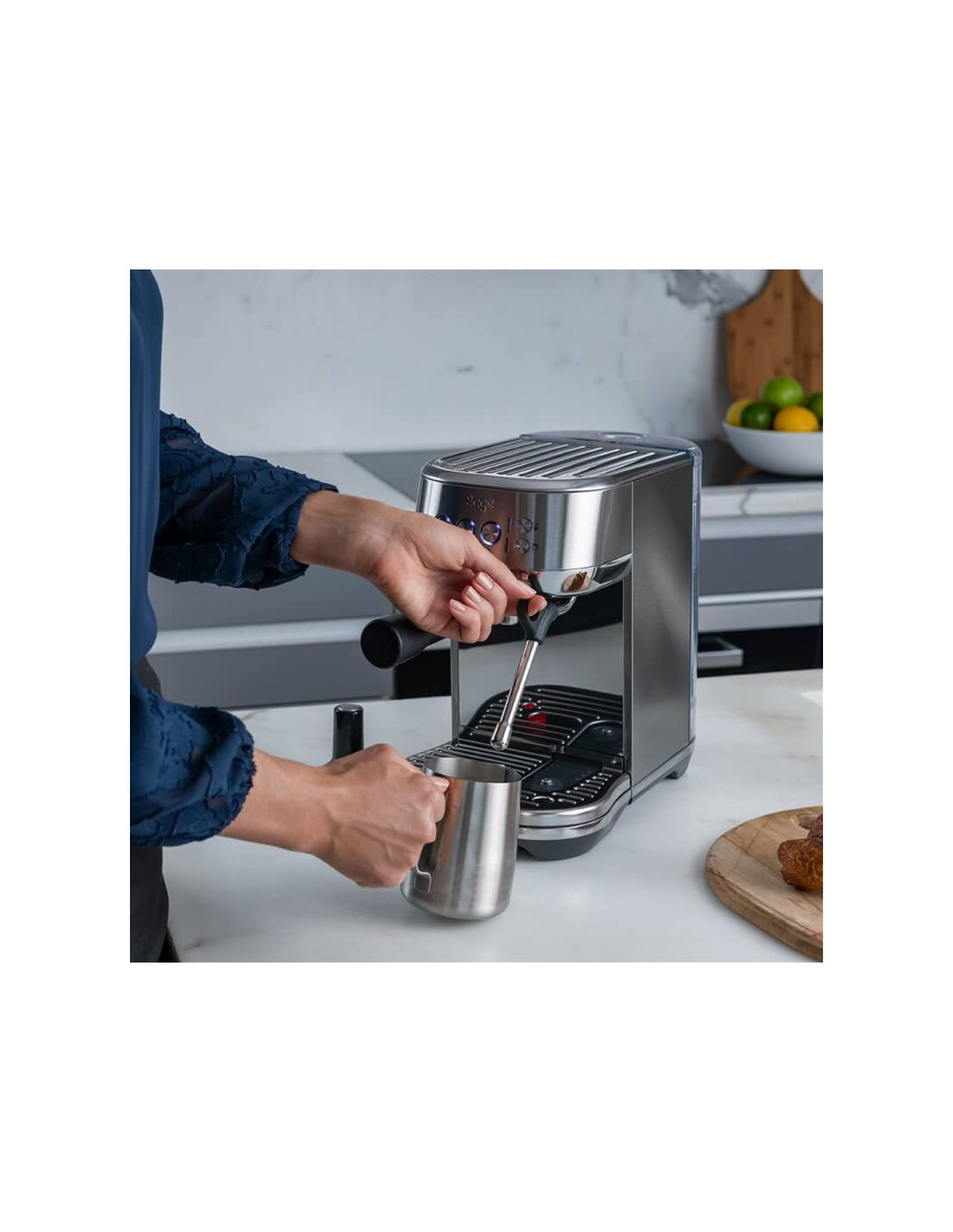 Aparat za kavu SAGE THE BAMBINO™ PLUS s polugom nudi profesionalnu kvalitetu espressa i brzo zagrijavanje za 3 sekunde za savršenu pripremu napitaka od kave i mlijeka.