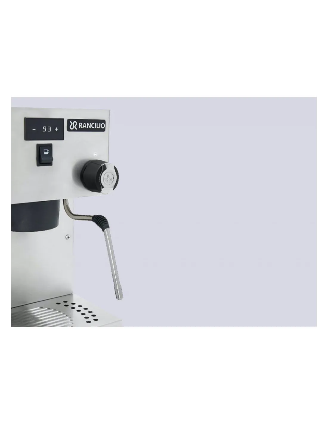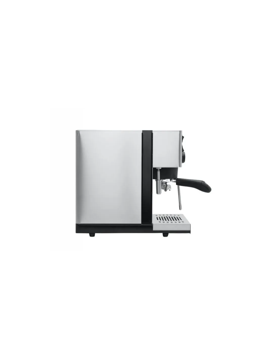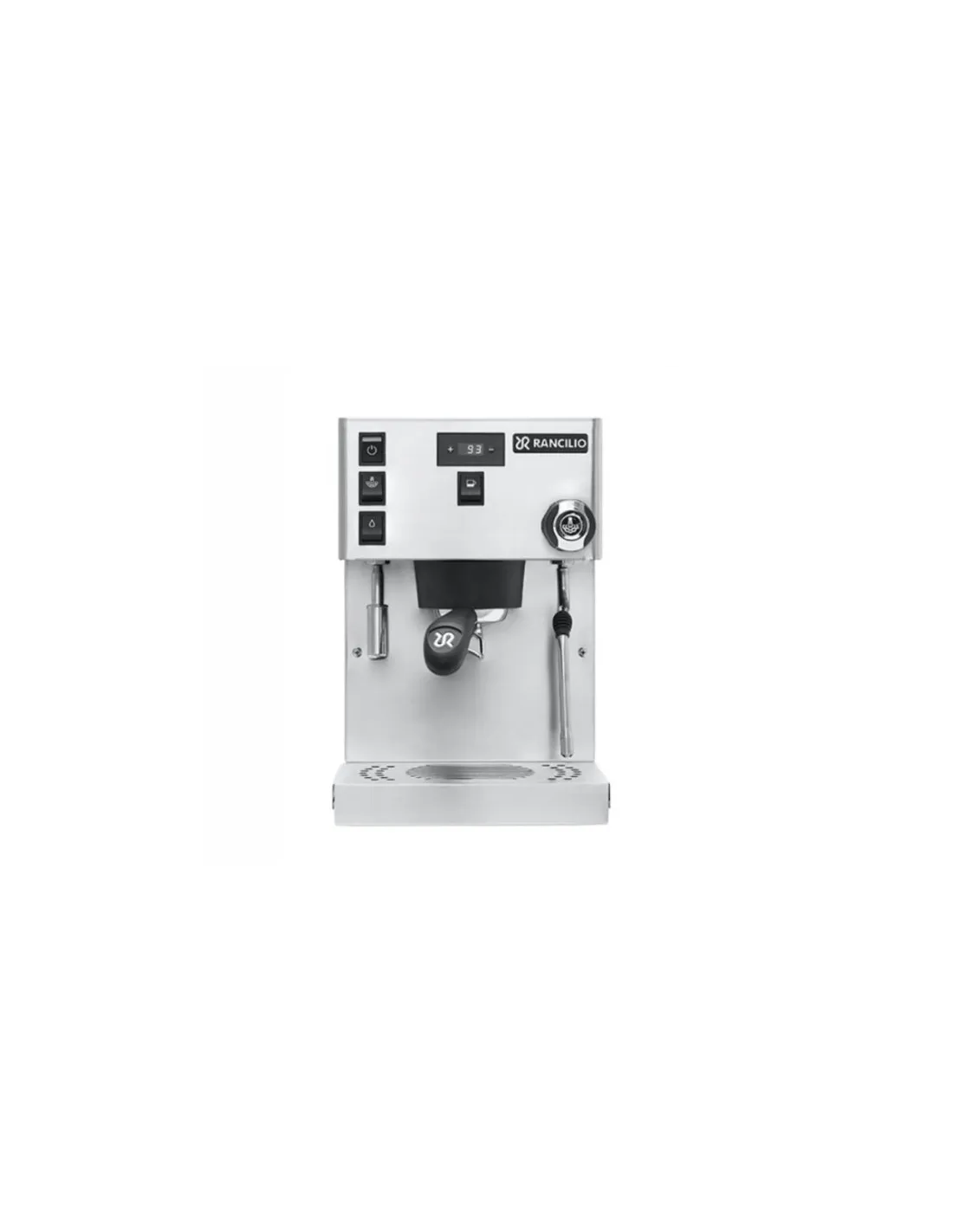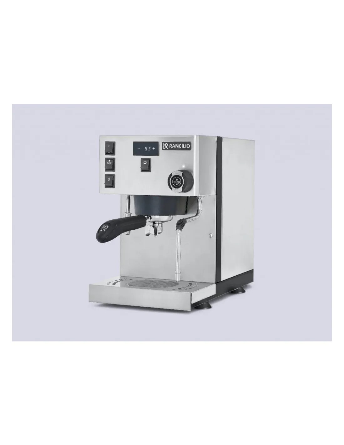 Poluprofesionalni aparat za kavu Rancilio Silvia Pro s dvostrukim kotlom , PID kontrolom temperature i digitalnim zaslonom za kontrolu temperature i vremena ekstrakcije. Opremljen je ručnim doziranjem .