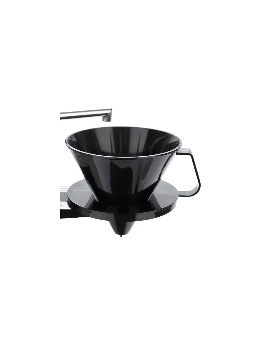 Apsolutno bitna značajka ovog aparata za kavu je mogućnost održavanja konstantne temperature od 92-96°C tijekom cijelog perioda ekstrakcije . Posebna rotirajuća glava osigurava ravnomjerno točenje male količine kave. Samo stavite svoju omiljenu šalicu ispod plastičnog lijevka s filtrom i kava će kapati izravno u nju . Ne morate čak ni brinuti o složenosti cijelog uređaja. Aparat za kavu ima samo jednu tipku za gašenje i paljenje te ima funkcije automatskog isključivanja nakon filtriranja kave. Praktična je i podloga za šalice koja se lako uklanja.