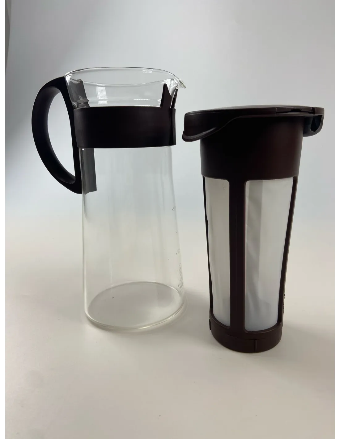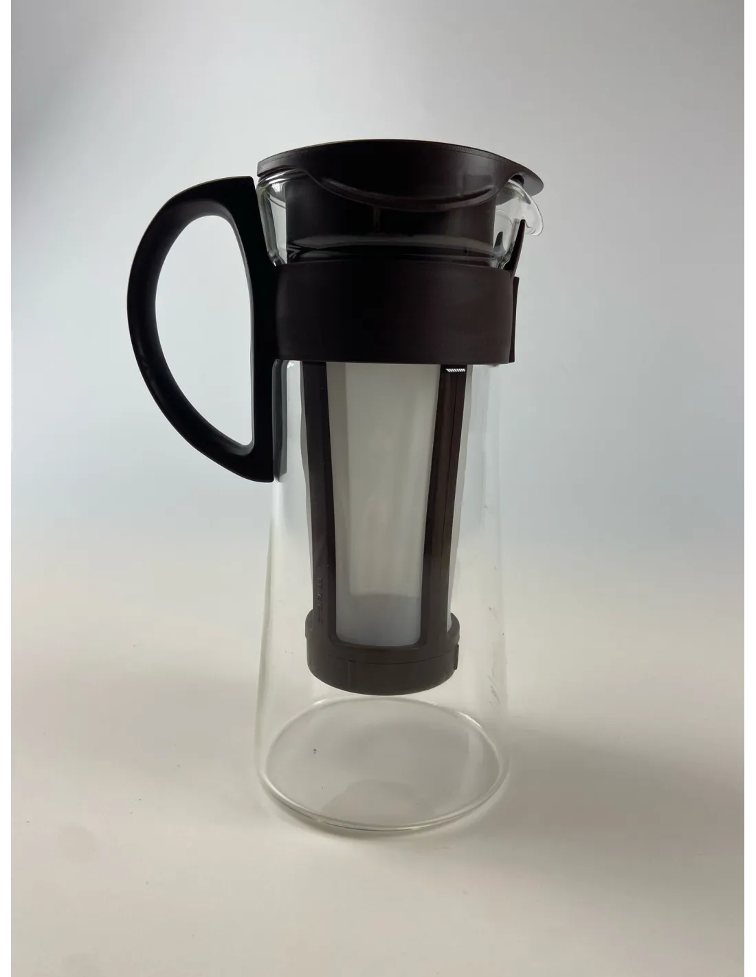 Aparat za kavu Hario Mizudashi za pripremu ledene kave pomoću ekstrakcije hladnom vodom, tzv. cold brew. Kapacitet 600ml. Rupa u filtru/POPUST.