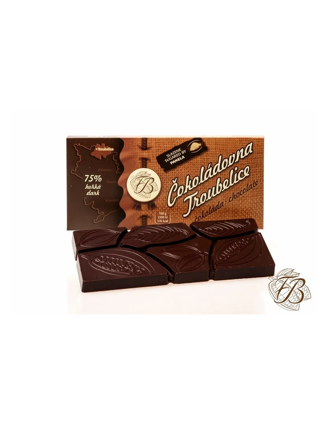 Gorka 75% čokolada , ugodno gorka, blagog okusa, zaslađena pločom soka od trske.