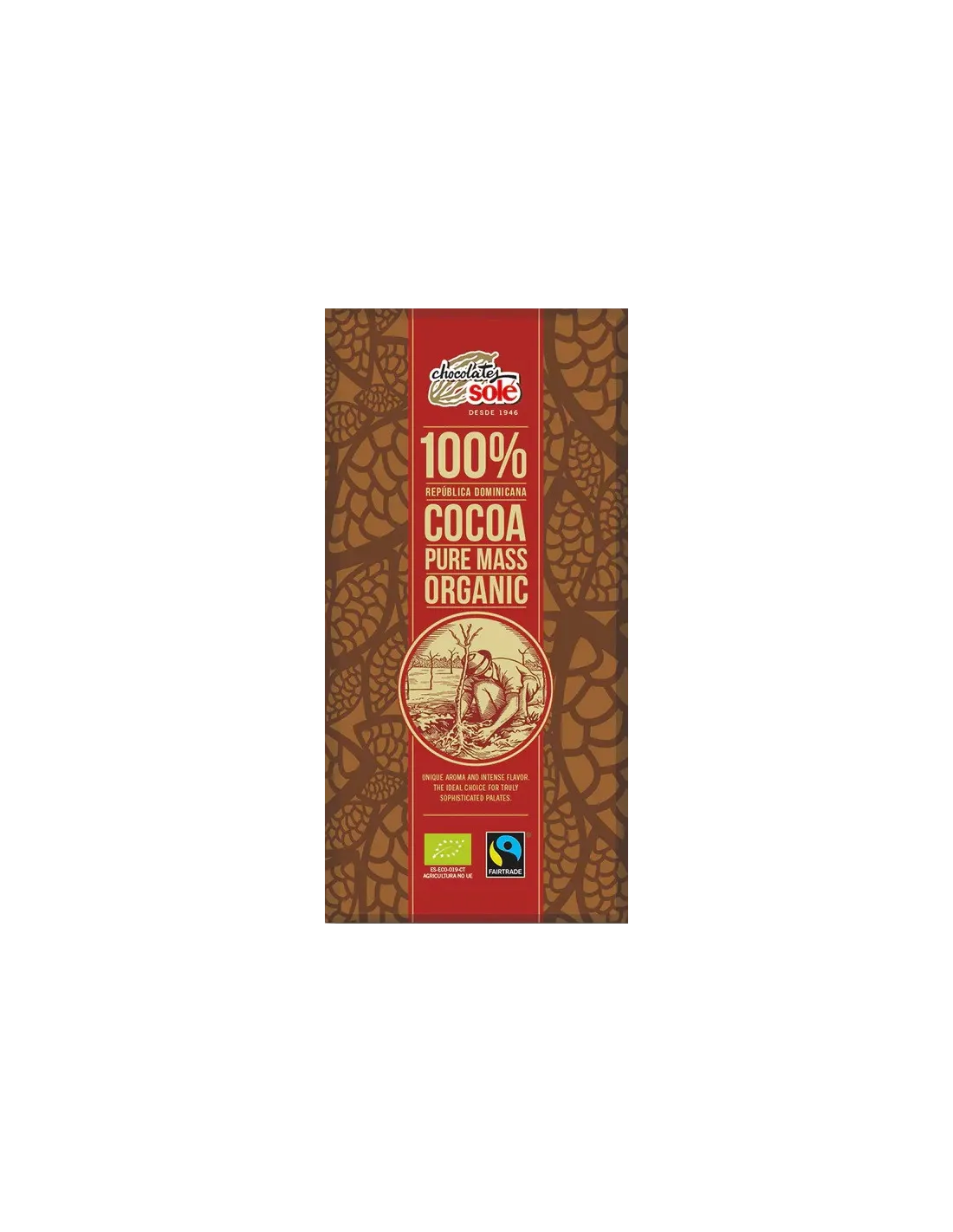 Jedinstvena 100% gorka "čokolada" koja sadrži samo kakao masu iz dominikanskog fair trade organskog kakaovca. Njegov intenzivan okus namijenjen je istinskim ljubiteljima čokolade.