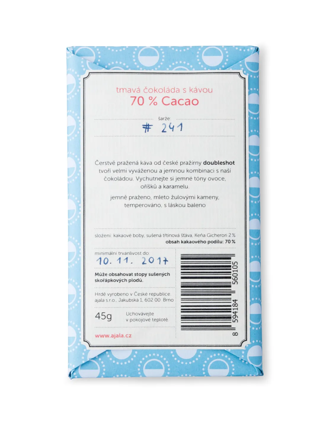 Svježe pržena kava iz češke Doubleshot pržionice čini vrlo uravnoteženu i delikatnu kombinaciju s Ajala čokoladom.