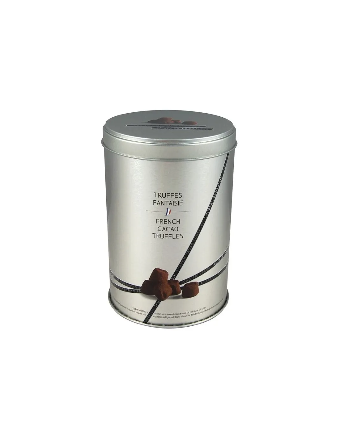 Delikatni kakao tartufi Mathez Fantaisie sa slanom karamelom u elegantnoj limenci srebro boje. Odlično uz kavu ili jednostavno.