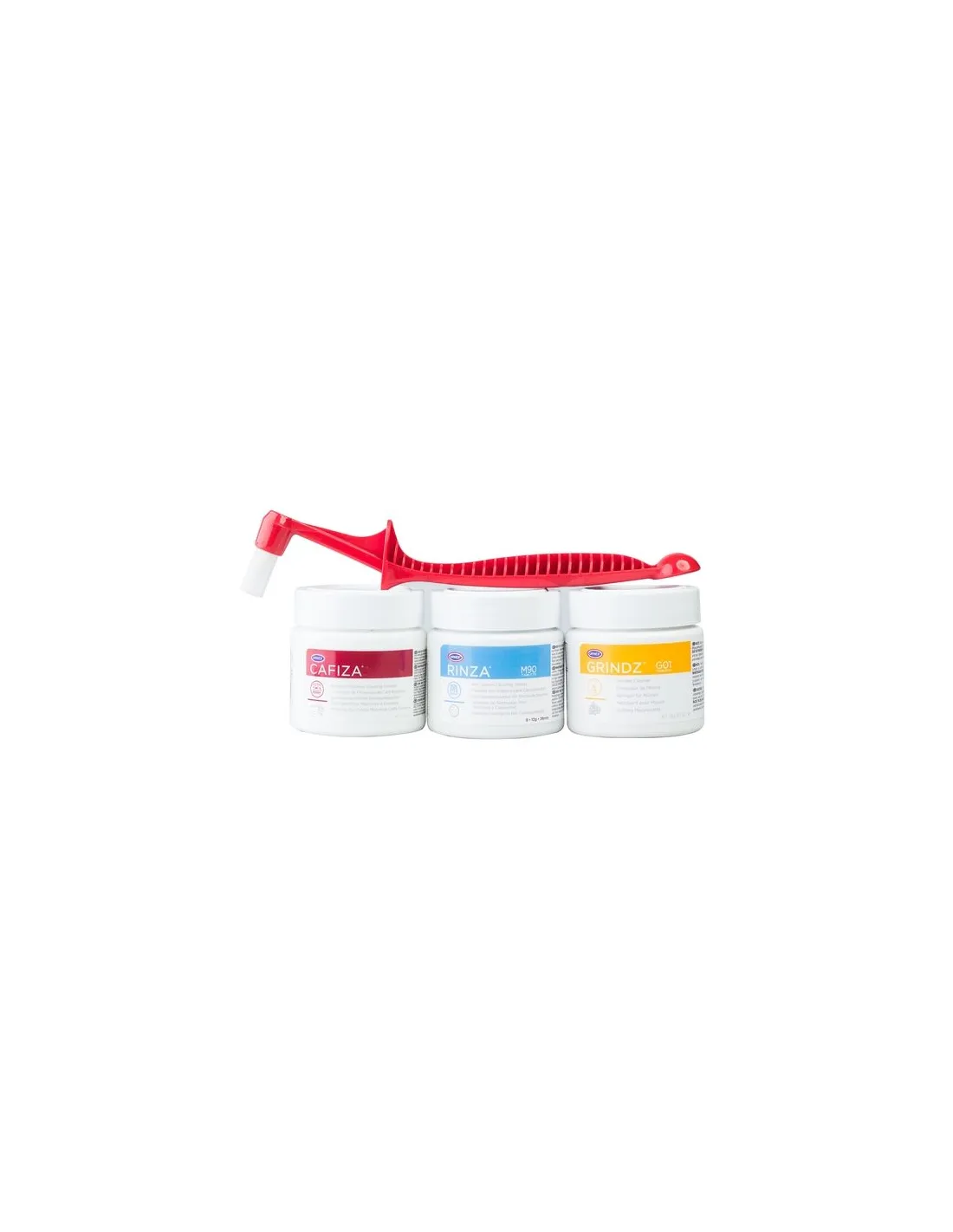 Urnex Starter Kit sadrži osnovne profesionalne preparate za čišćenje aparata i mlinova za espresso kavu američkog brenda Urnex .
