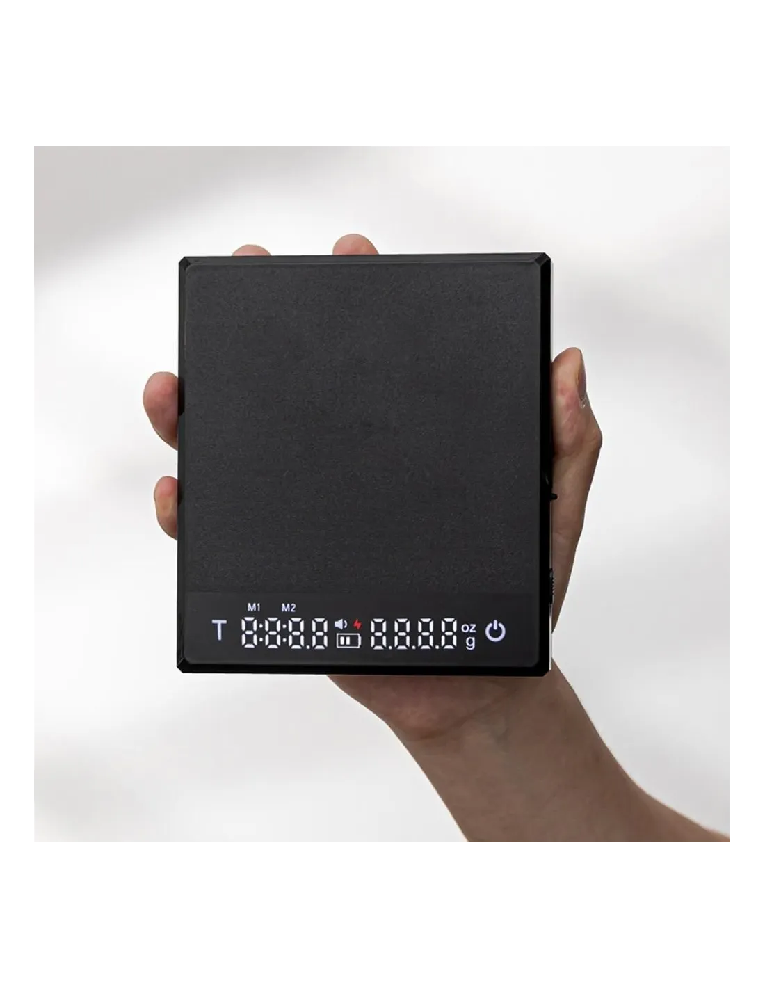 Izuzetno precizna baristička digitalna vaga Kaffia Professional s dva načina rada za pripremu kave za hand brew i espresso. Funkcija tare i ugrađeni timer su standard.