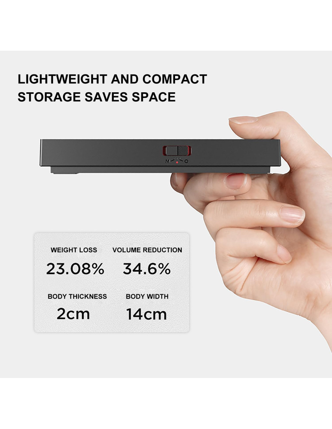 Velika prednost je i kompaktan dizajn. Težina je znatno lakša i manja , teži otprilike 300 g , a možete je lako pohraniti u ladicu ili ponijeti sa sobom na putovanja. Dimenzije su otprilike 15,2 × 13 × 2,6 cm . Minimalistički dizajn sa staklenom površinom nastavlja karakterističan stil serije Mirror i savršeno se uklapa u modernu kuhinju ili kutak za kavu.
