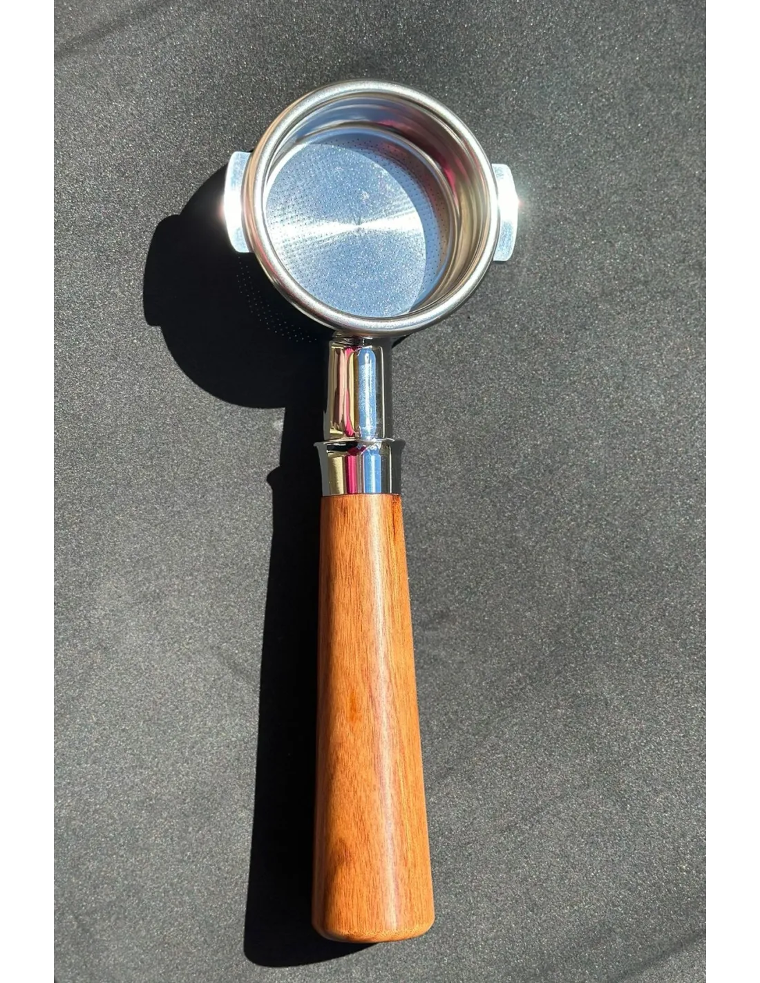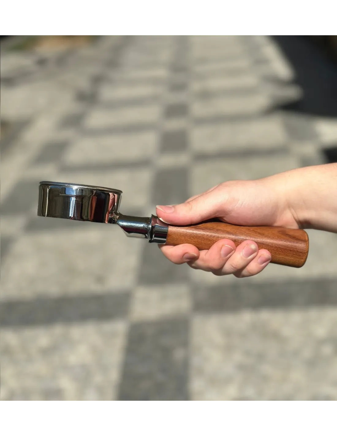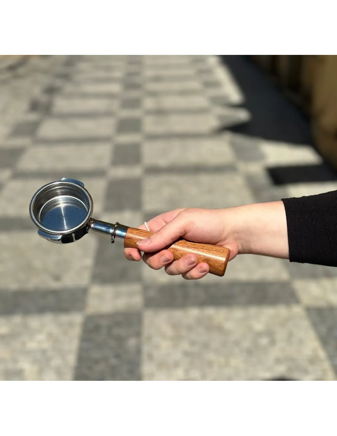 Kaffia Bottomless Portafilter 58 mm gola poluga izrađena je od kromiranog mesinga i ima udobnu drvenu ručku.