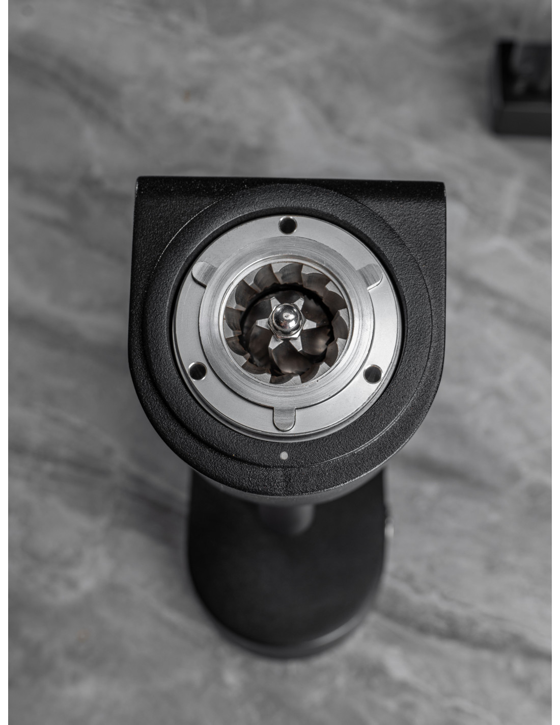 Kaffia Vector električni mlinac, kompaktni metalni kameni od 38 mm, postavke 0-65 i niskih 160 okretaja u minuti za ravnomjerno mljevenje.