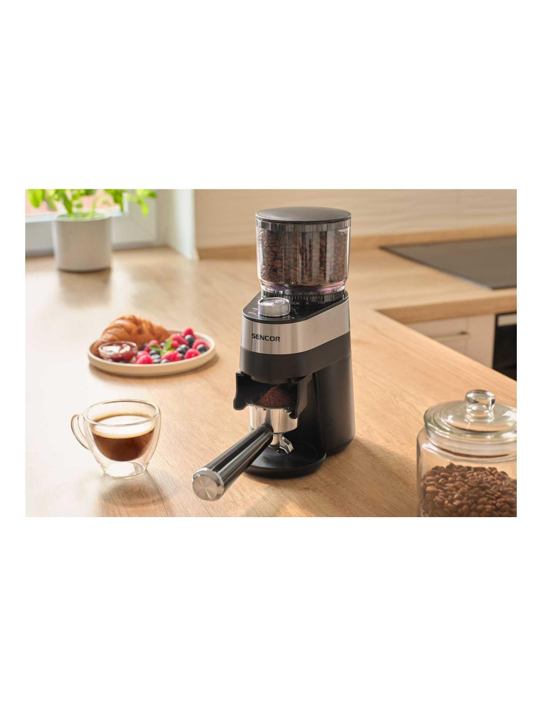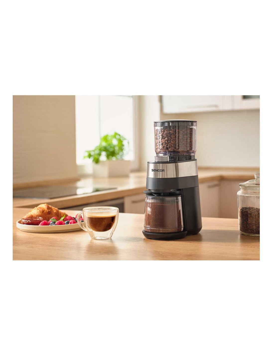 Uživajte u svježe mljevenoj kavi svaki dan s elegantnim i snažnim električnim mlincem Sencor SCG 5060BK . Ovaj model koristi ravne kamene za mljevenje od nehrđajućeg čelika koji osiguravaju ravnomjerno, brzo i precizno mljevenje bez pregrijavanja zrna, čuvajući njihovu aromu i okus.