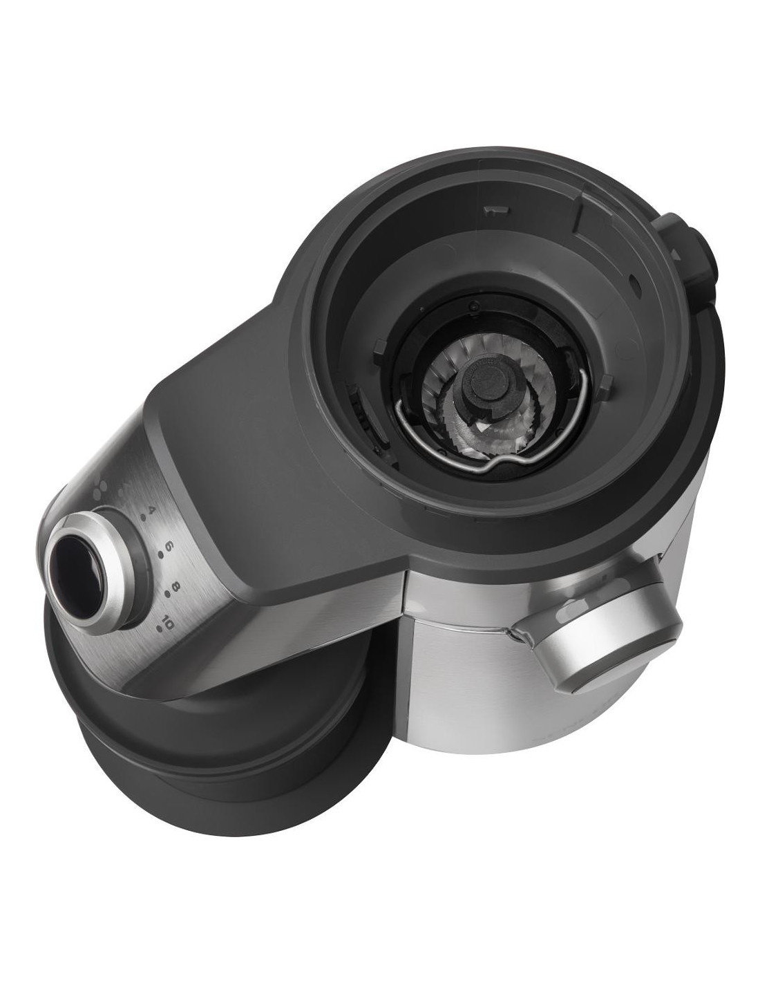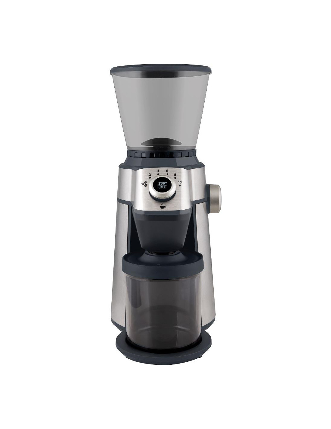 Mlinac je opremljen rotacijskim odabirom porcija za 2-10 šalica i funkcijom automatskog isključivanja kada je mljevenje završeno. Zahvaljujući planetarnom mjenjaču, njegov rad je izuzetno tih i gladak , što ćete posebno cijeniti prilikom pripreme kave ujutro.