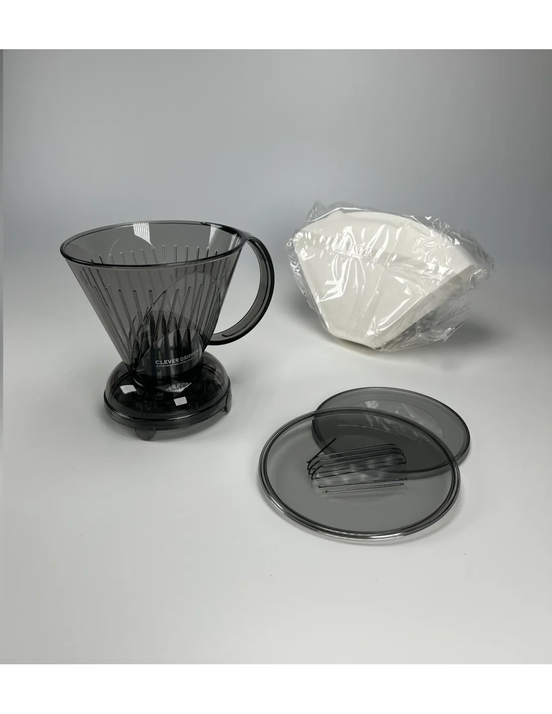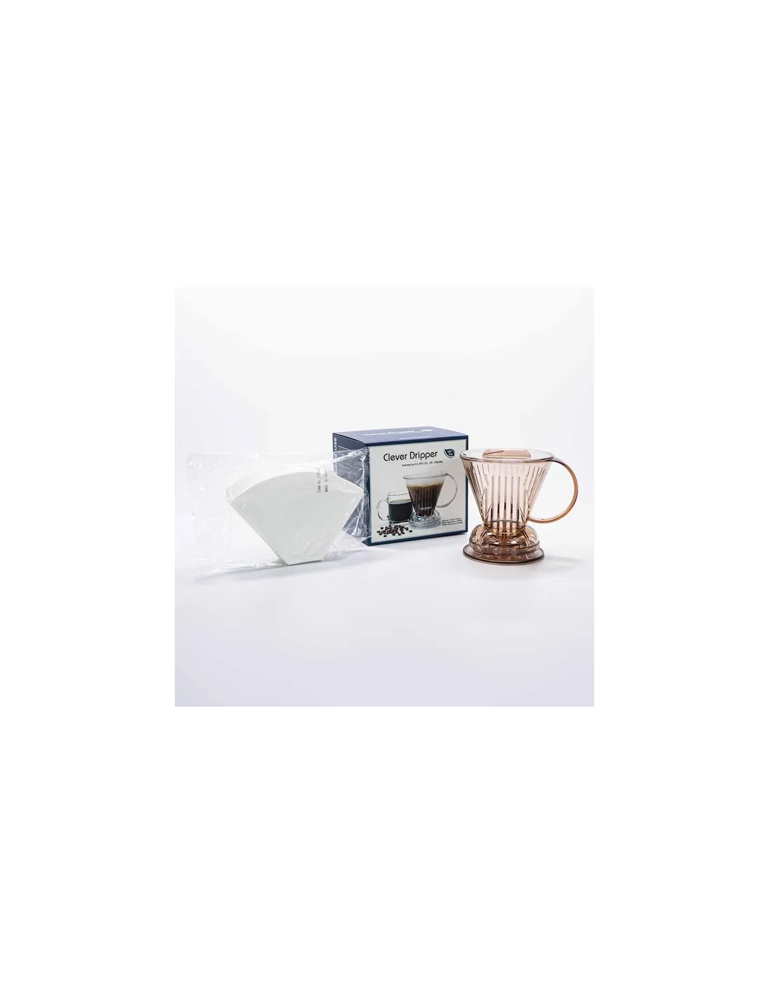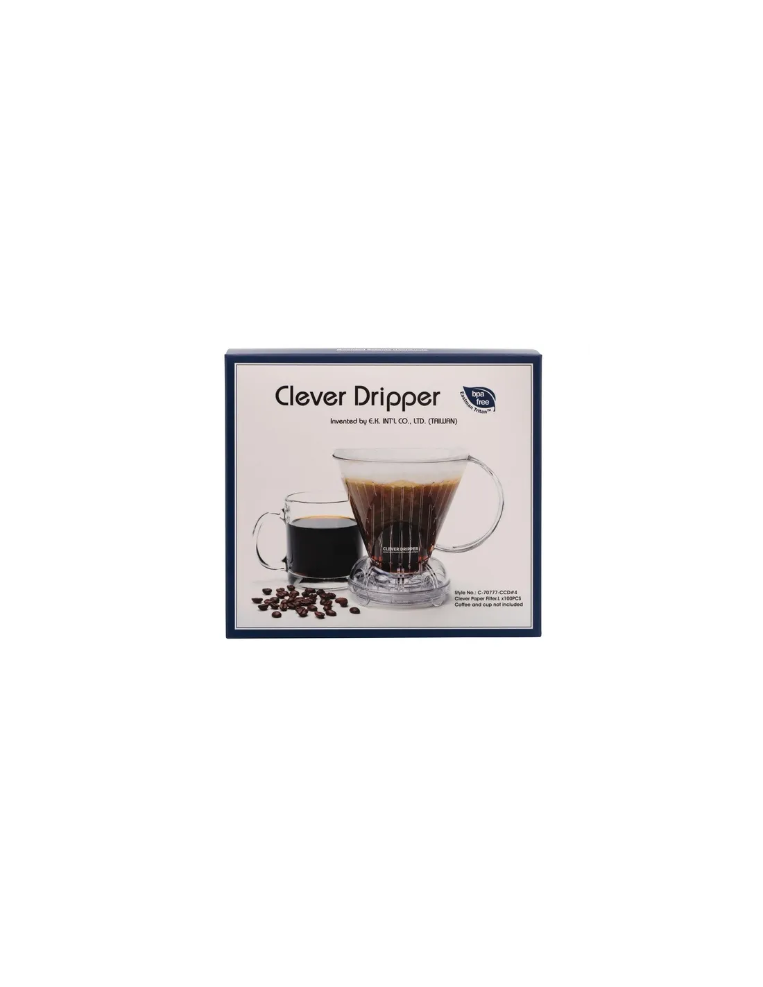 Pametni dripper Clever ujedinjuje prednosti french pressa i istovremeno prednosti klasičnog V60 drippera. Zbog patentiranog ventila na dnu Clever Drippera možete, za razliku od klasičnog drippera, kavu namakati po vremenu koje odredite, baš kao u slučaju french pressa. Kada zatim postavite Clever Dripper na šalicu, ventil će se automatski otvoriti i kava će proći kroz filter. Na taj način možete lijepo kontrolirati okus i puninu kave. Zbog papirnog filtra, kava je potpuno čista. Sada je u pakiranju uključeno 100 filtara.