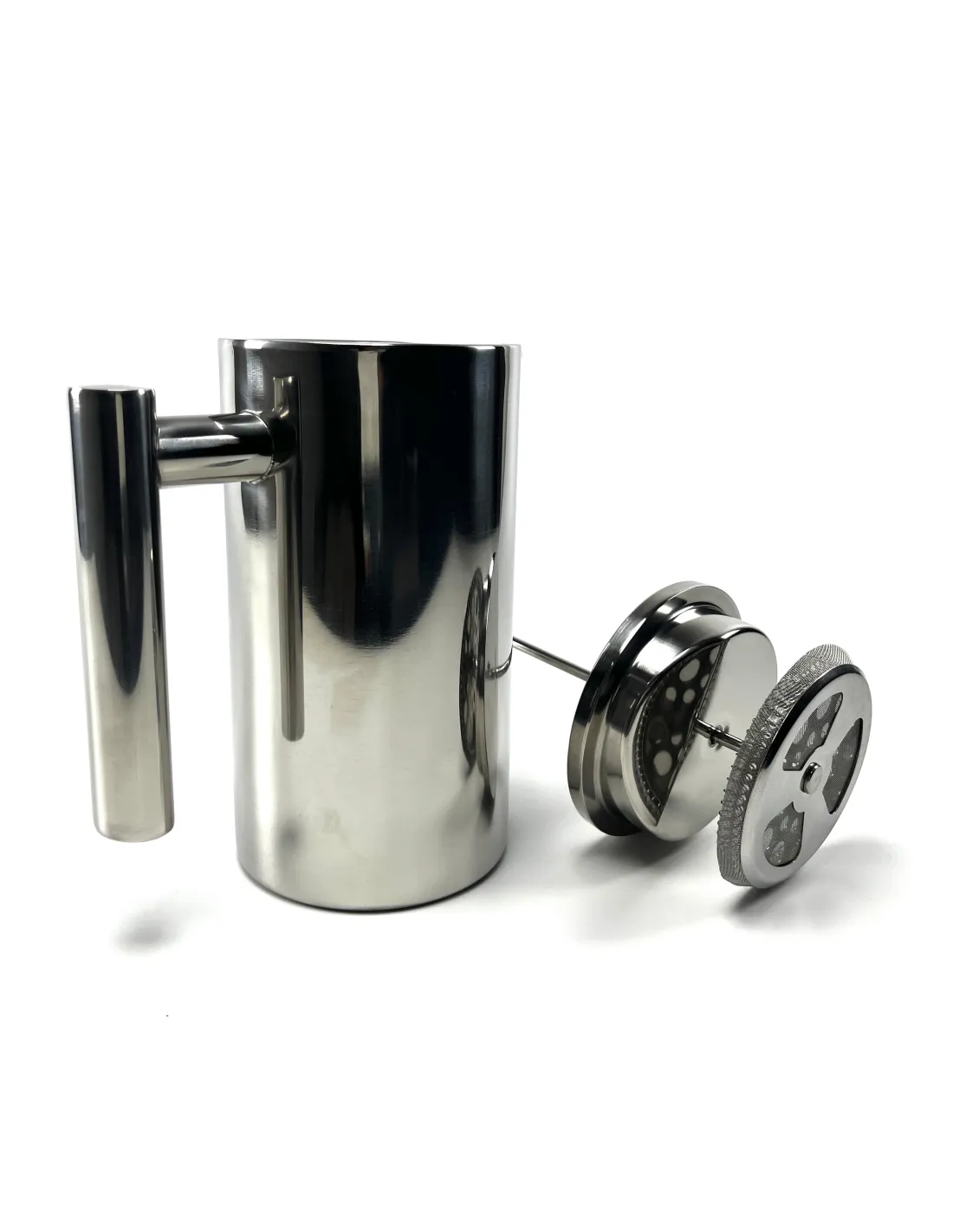 Elegantna francuska preša od nehrđajućeg čelika idealan je pomoćnik za pripremu svježe kave za sve koji vole jednostavnu pripremu kvalitetne kave, moderne materijale i čist dizajn.