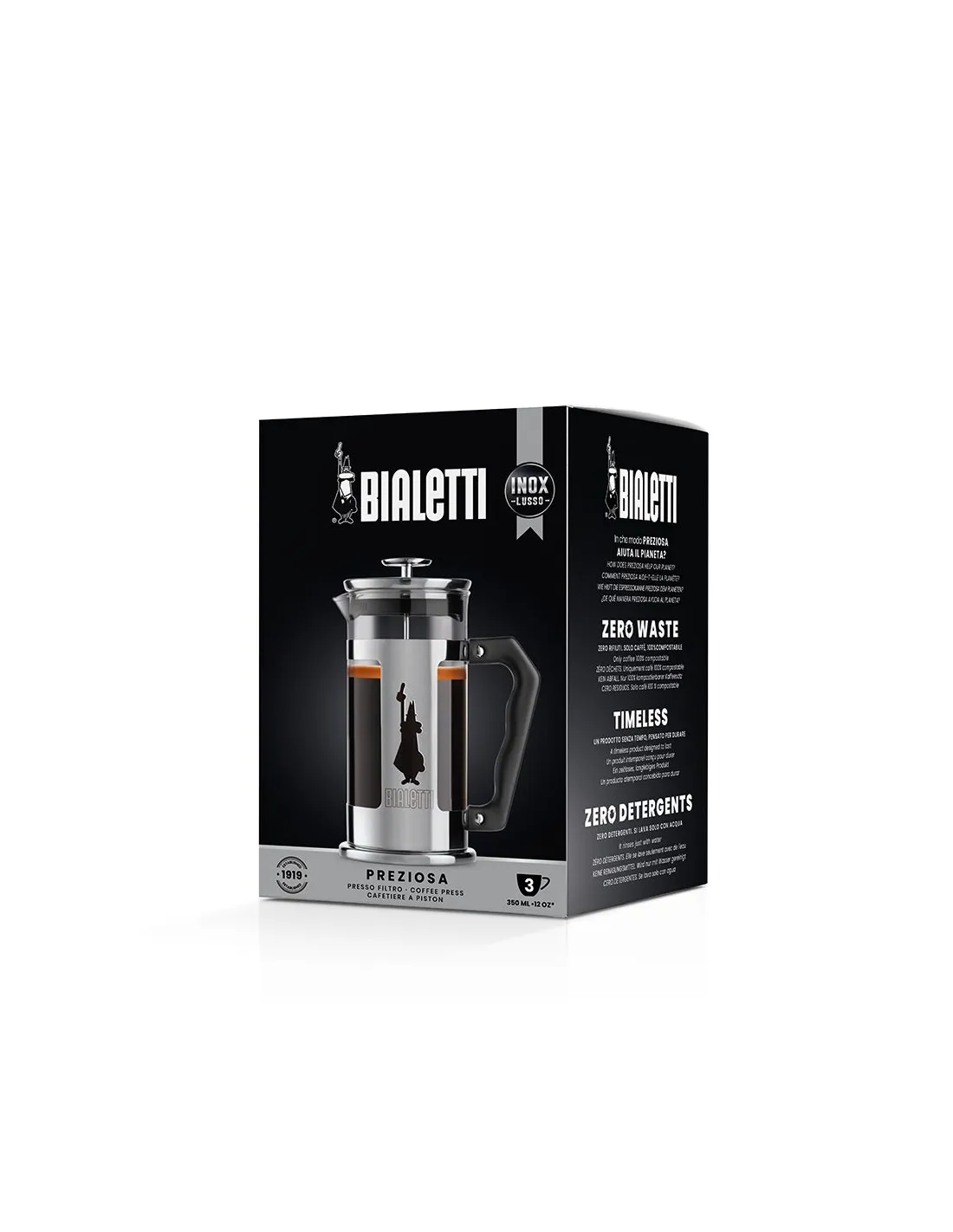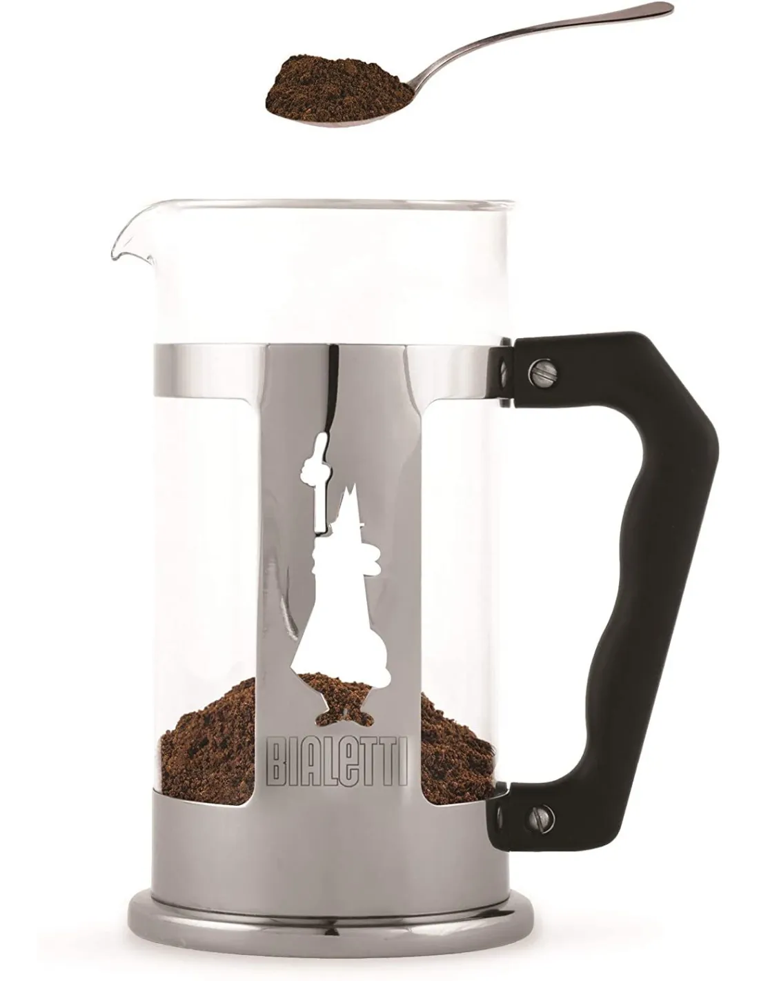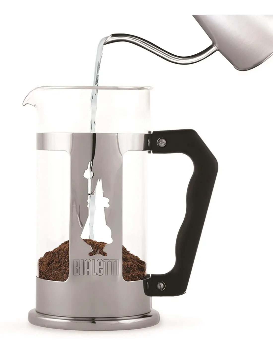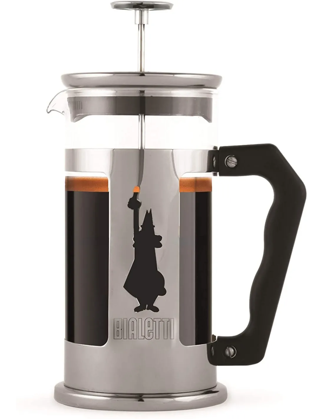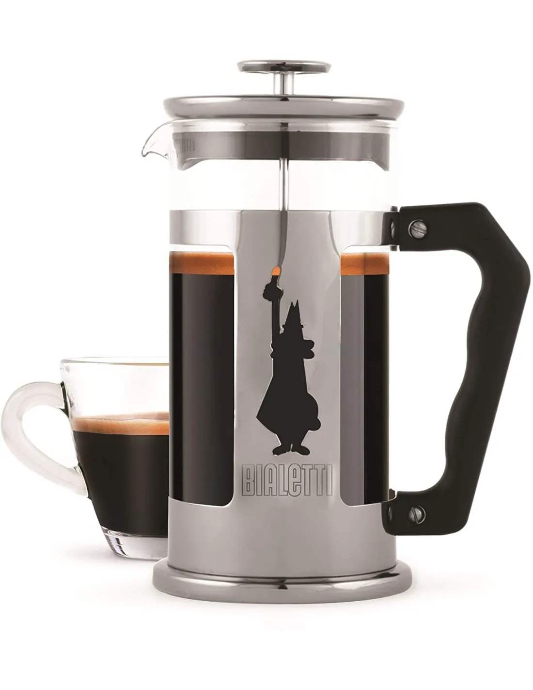 Luksuzna francuska preša Bialetti od nehrđajućeg čelika zapremine 350 ml za jednostavnu pripremu svježe kave . Sa slikom Bialettijeve figurice.