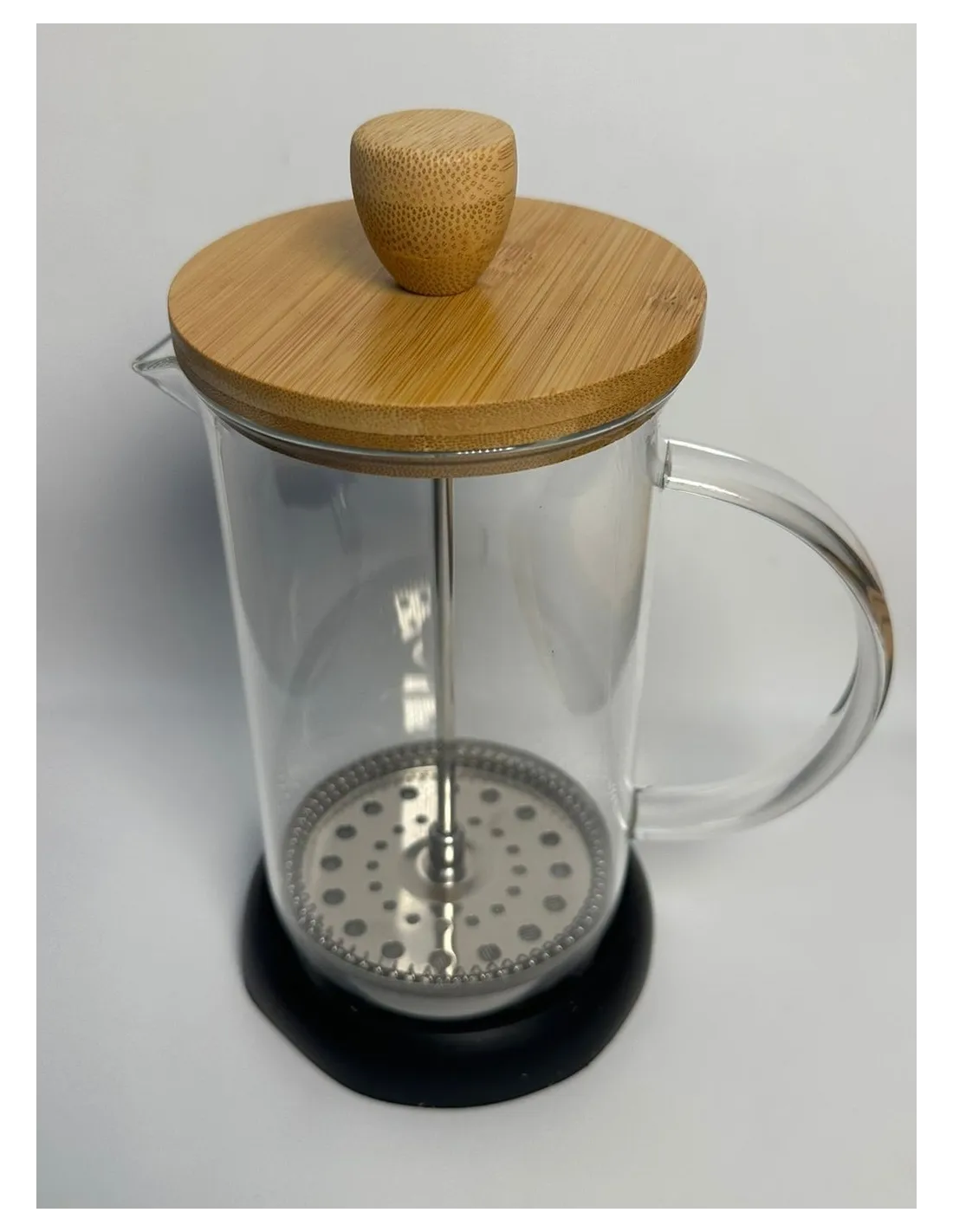Frenchpress kuhalo je izrađeno od borosilikatnog stakla . Klip je izrađen od nehrđajućeg čelika, a poklopac od bambusa, što ovo kuhalo čini zanimljivim komadom za vašu kuhinju. U donjem dijelu kotlića nalazi se pluteni jastučić koji služi kao izolacija i može se ukloniti.