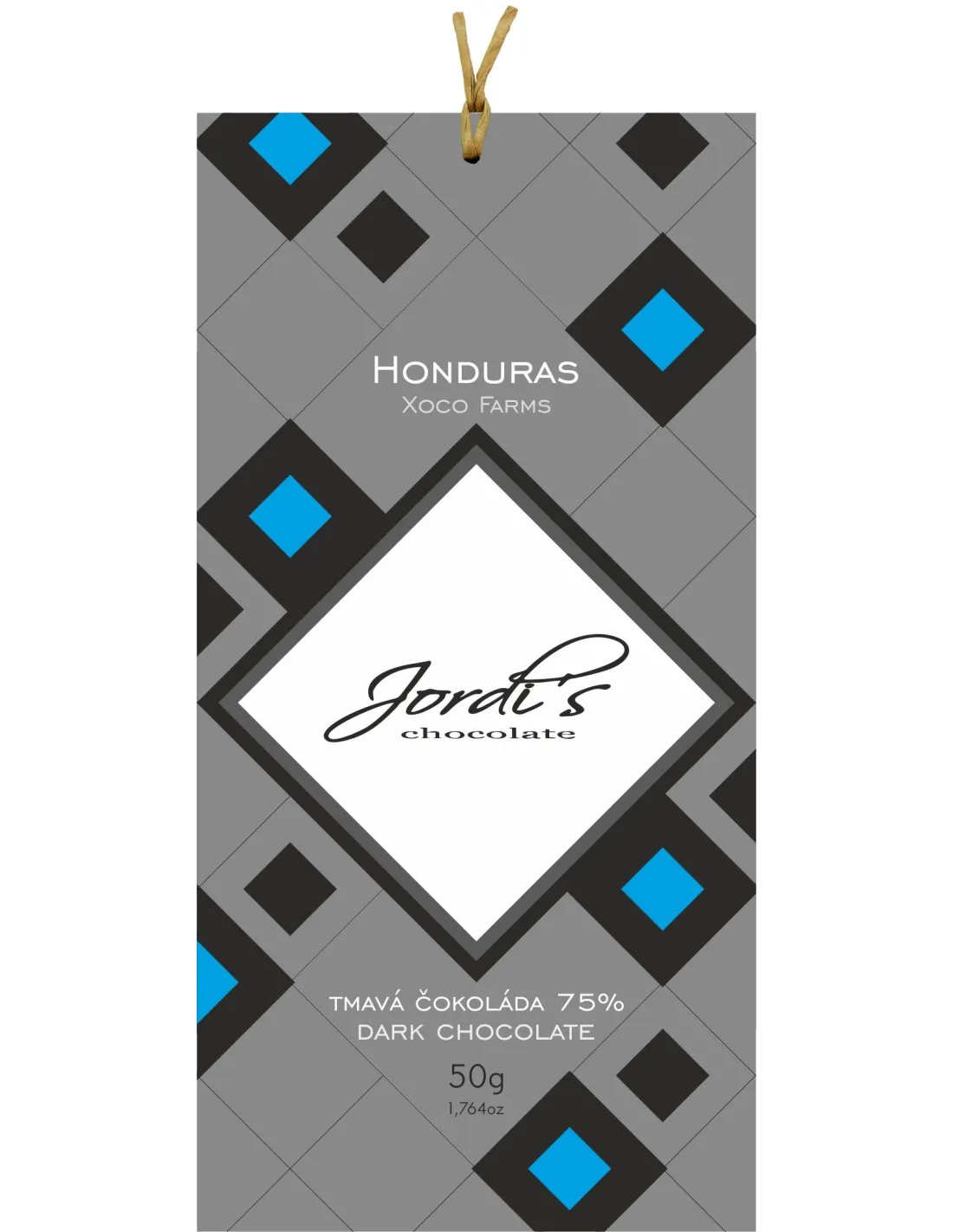Tmavá čokoláda 75% vyrobená z kakaových bobů z Hondurasu, ze země, která je pravlastí kakaovníku a trinitario Mayan Red, z něhož je tato čokoláda vyrobena. Stromy rostou ve stínu banánovníků a nad nimi se pnou vzácné dřeviny jako je mahagon a teak.
