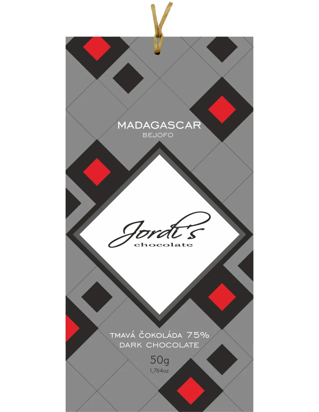 Tmavá čokoláda 75% vyrobená z kakaových bobů z Madagascaru z farmy Bejofo, která má svou tradici již od roku 1922. Kakao druhu trinitario zde roste ve stínu stromů mantaly a inga, po nichž se pnou stvoly pepřovníku. Nezaměnitelná chuť Vás jistě osloví.