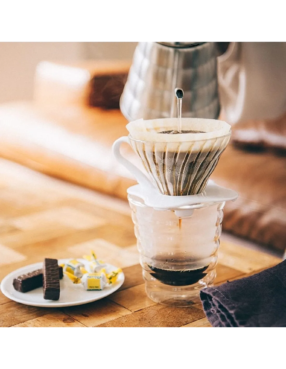 Svoju savršenu staklenu umjetnost među kapaljkama pokazala je japanska tvrtka Hario . Rezultat je elegantna staklena kapaljka Hario V60-01 . Postat će vaš veliki pomoćnik, zahvaljujući kojem će priprema filtrirane kave biti jednostavna, a rezultat će se isplatiti! Zahvaljujući dizajnu stakla još je bolja provodljivost topline, a kava zadržava sve svoje okuse i arome. Spiralna unutrašnjost osigurava maksimalno izvlačenje.