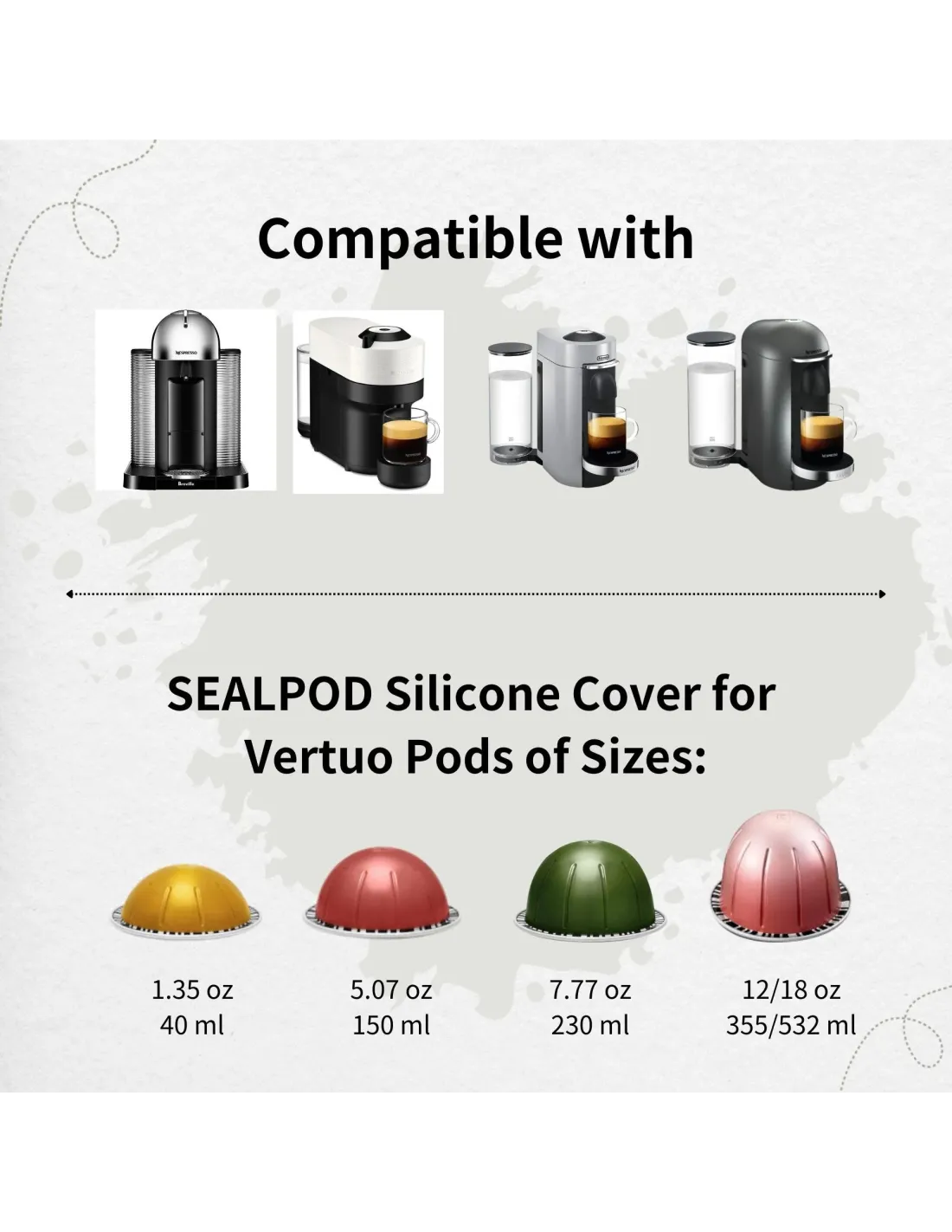 Sealpod višekratni silikonski poklopci namijenjeni su za aparate za kavu Nespresso VertuoLine® i Vertuo®. S ovim poklopcima možete ponovo koristiti očišćene kapsule za jednokratnu upotrebu Nespresso Vertuo®.