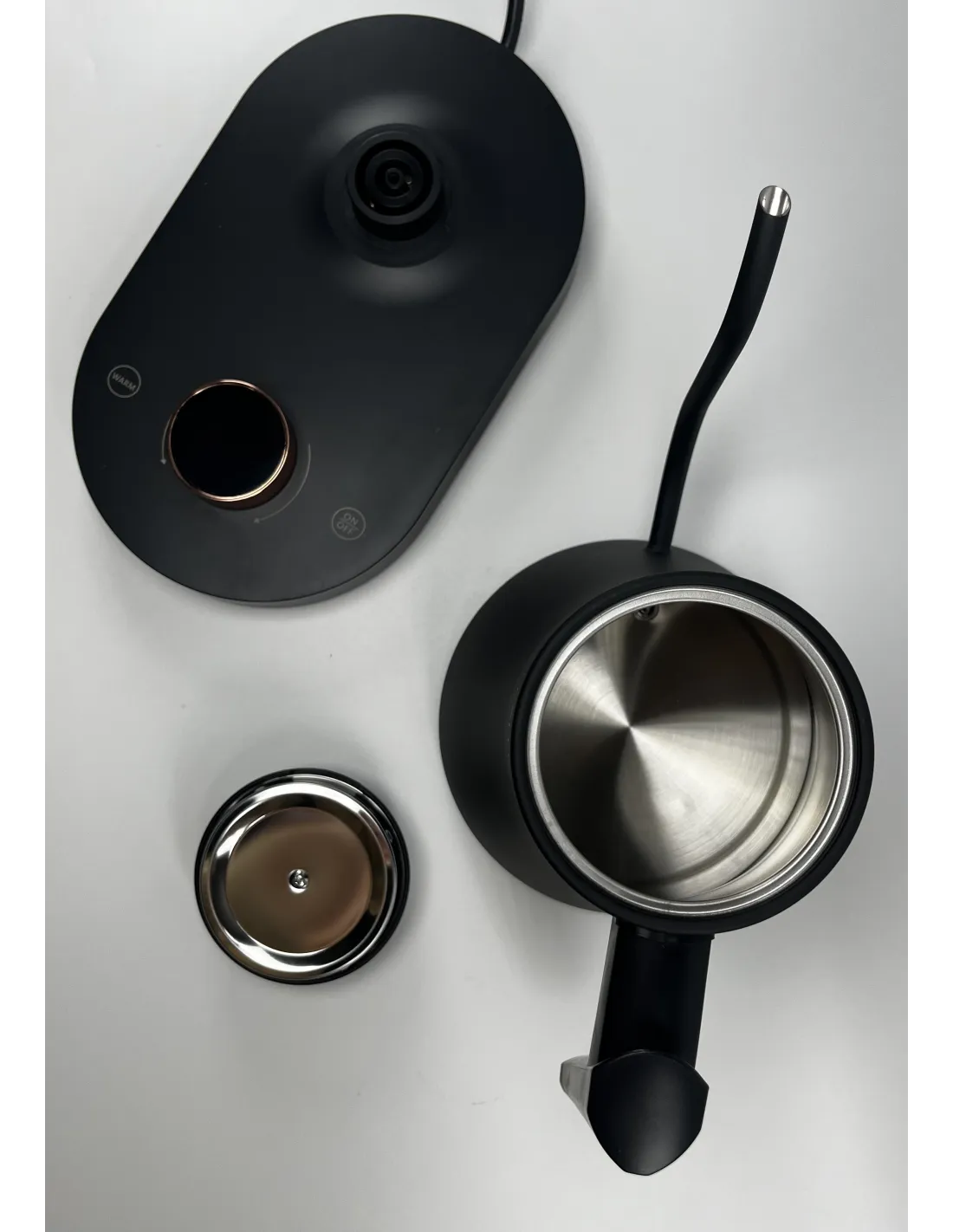 Pametno kuhalo za vodu Eletric Kettle Kaffia omogućuje vam postavljanje točne temperature na koju treba zagrijati vodu za pravilnu pripremu napitka. Osim zadane temperature pokazuje i trenutnu temperaturu vode , pa služi i kao termometar . Kuhalo je opremljeno bazom koja se okreće za 360° i elegantnom pločom osjetljivom na dodir s rotirajućim gumbom, koja također služi i kao zaslon.