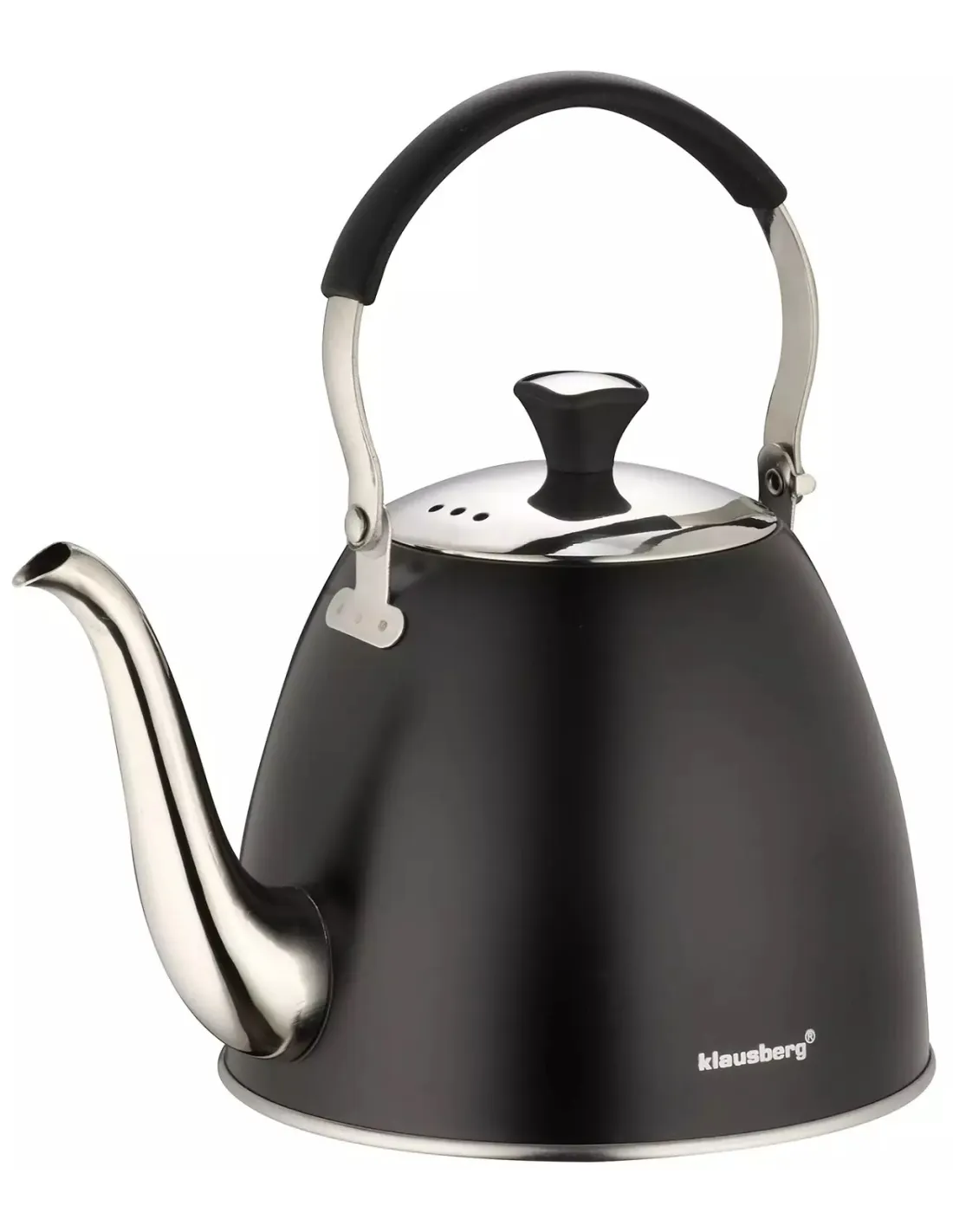 Kuhalo za vodu Klausberg Gooseneck idealan je suputnik za sve ljubitelje čaja i biljnih infuzija . Zahvaljujući uklonjivom čeličnom cjedilu, možete uživati u savršeno čistoj infuziji bez neželjenih taloga. Elegantan mat crni dizajn savršeno će nadopuniti svaku kuhinju, a njegova praktična sklopiva ručka omogućuje jednostavno spremanje. Ergonomska ručka se ne zagrijava, što osigurava udobno rukovanje, a poklopac koji se može skinuti olakšava čišćenje i punjenje vodom.
