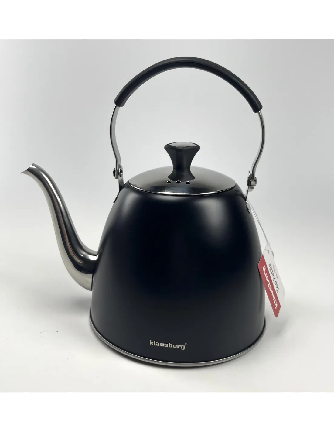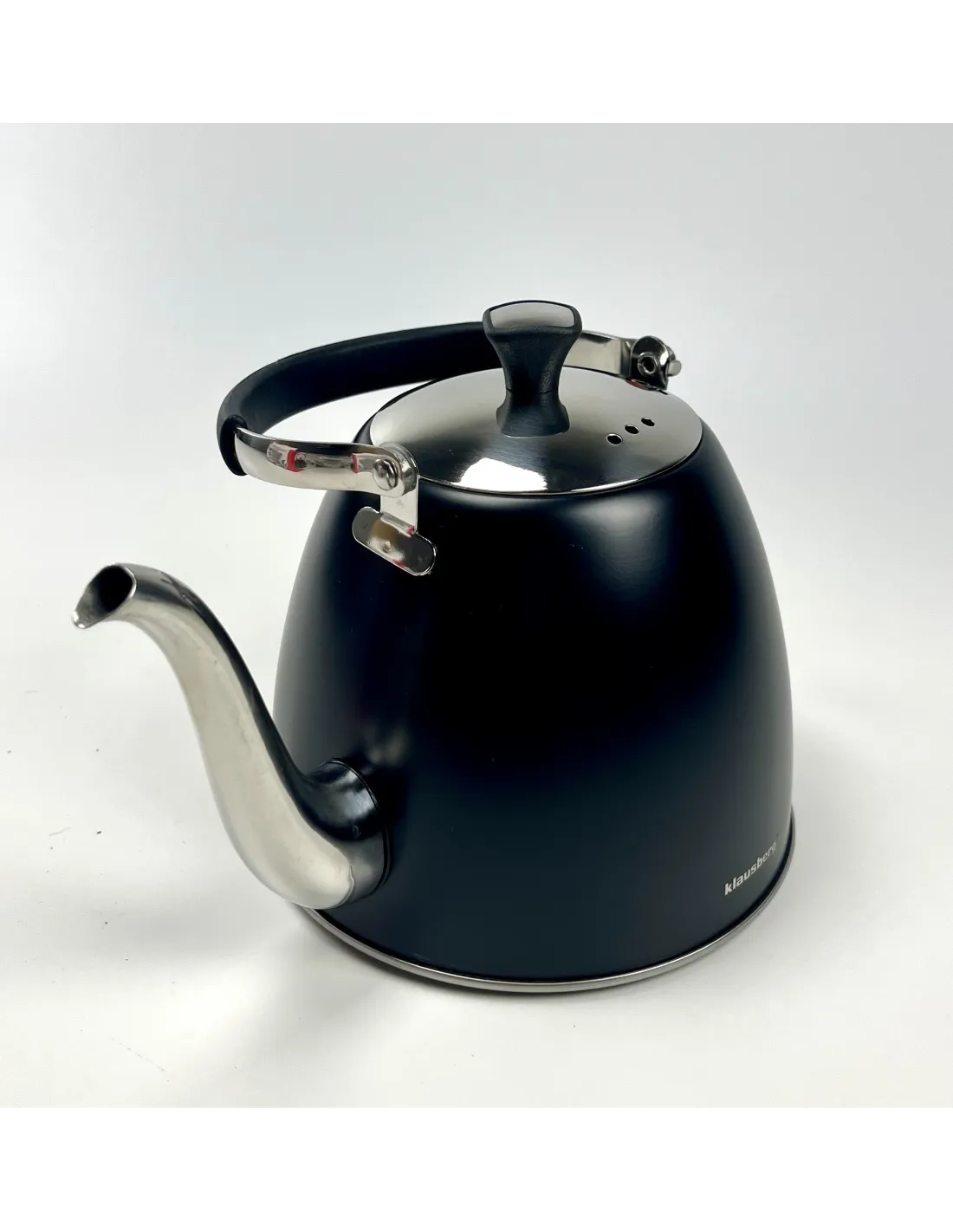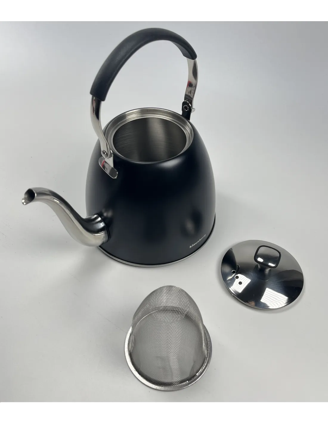 Gooseneck Klausberg kuhalo za vodu od nehrđajućeg čelika s elegantnim dizajnom i odvojivim cjedilom , idealno za pripremu čaja i biljnih infuzija.