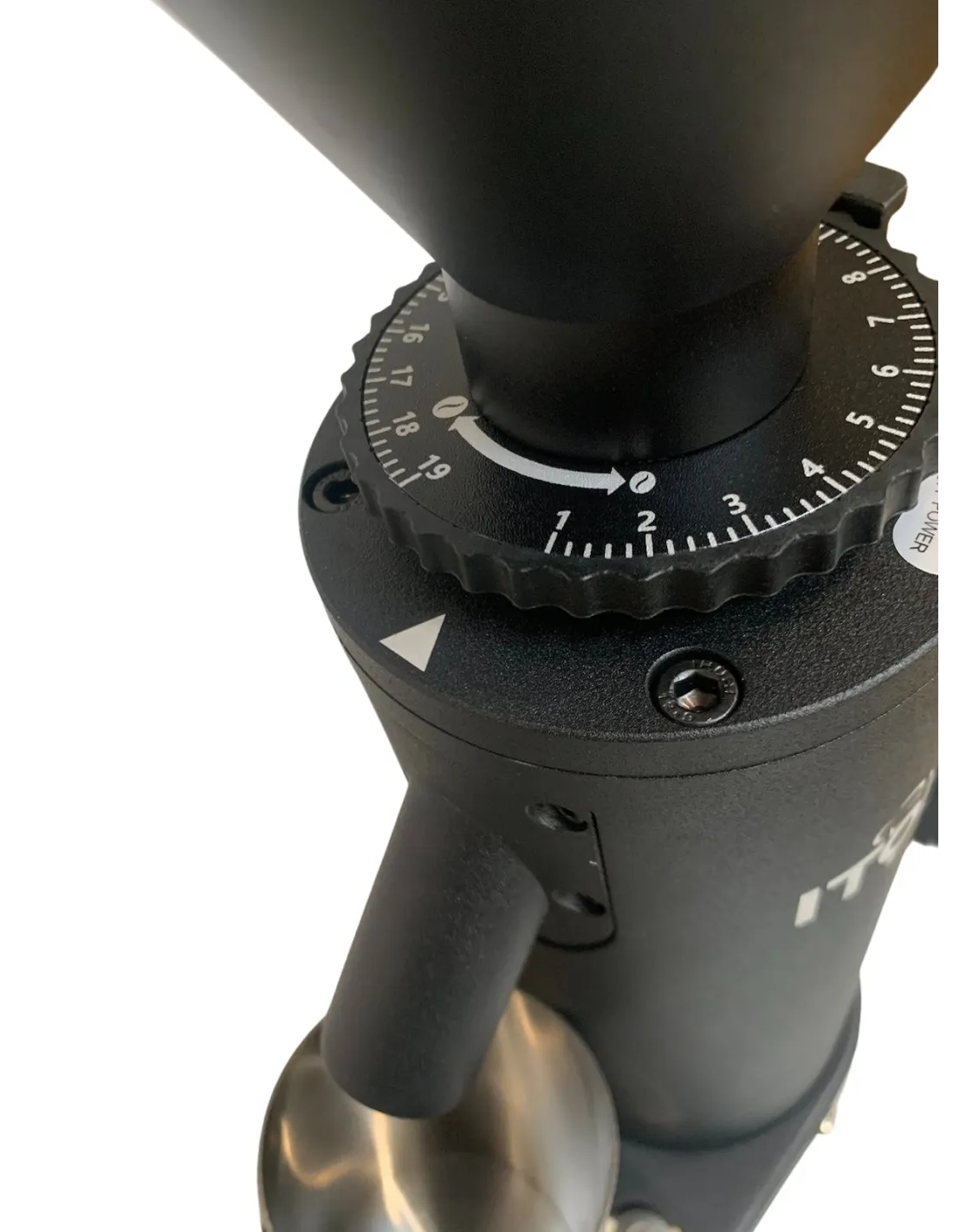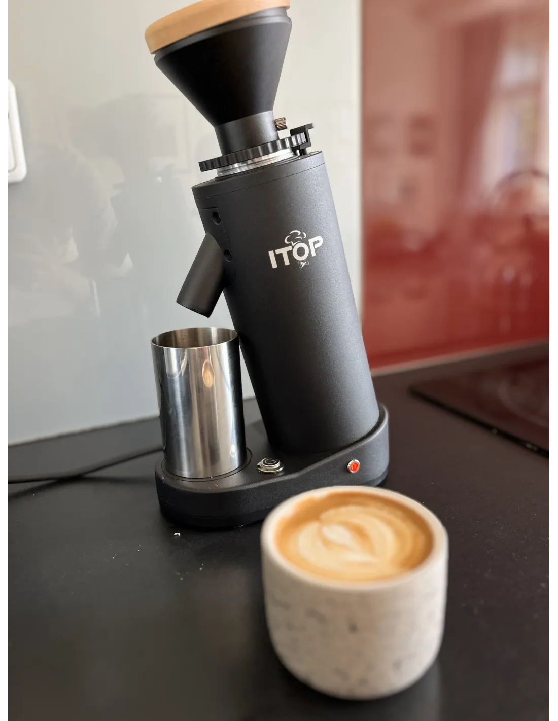Mali, dizajnerski električni mlinac za kavu Kaffia Itop Zero prikladan je i za espresso s tehnologijom zero retention - ne zadržava kavu u sebi.