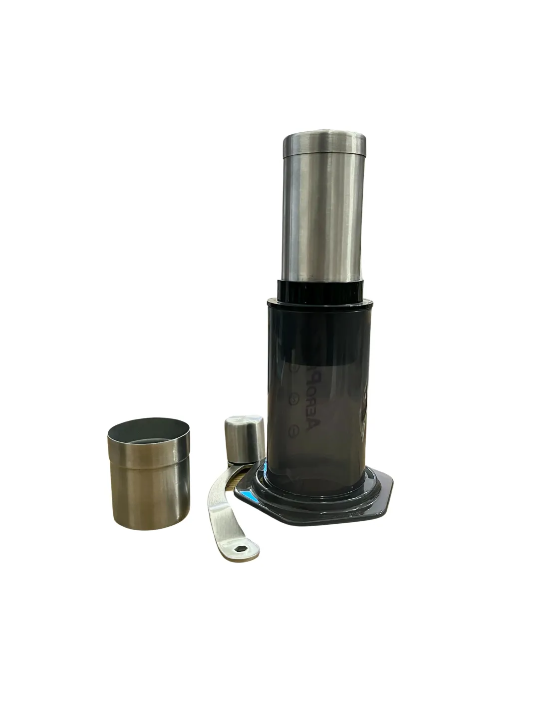 Svi koji su se zaljubili u okus Aeropress kave voljet će i mlinac. Mlin ima i adapter, zahvaljujući kojem mlinac točno pristaje u Aeropress i možete mljeti kavu direktno u aparatu za kavu. Kombinacija Rhinowares Compact brusilice i Aeropressa stvara savršen duo za putovanja :)