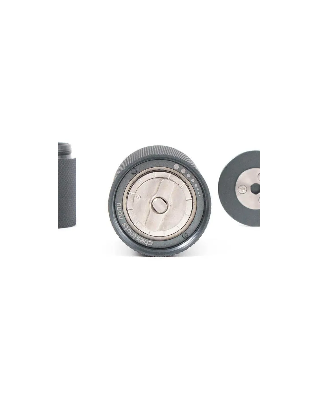 Timemore Nano je kompaktni mali mlin izvrsne izrade izrađen od jednog komada aluminija. Savršen za putovanja. Mlin je opremljen preciznim konusnim kamenjem od kaljenog čelika i 2 ležaja koji omogućuju visoko precizno i konstantno mljevenje . Gruboća se lako podešava rotirajućom maticom s donje strane mlina.