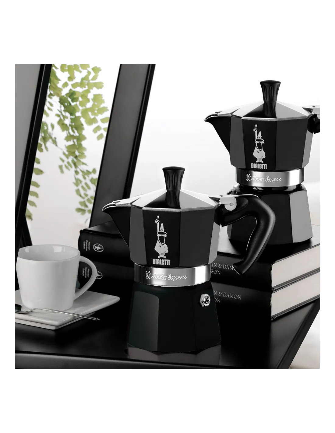 Legendarni moka lonac Bialetti Moka Express talijanske tvrtke Bialetti za tradicionalnu pripremu jače kave. U elegantnom crnom dizajnu , prikladno za 3 šalice, tj. cca 130 ml.