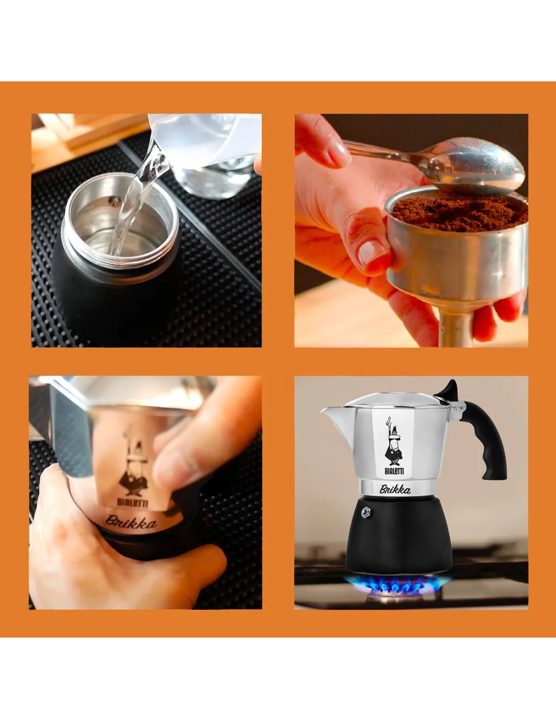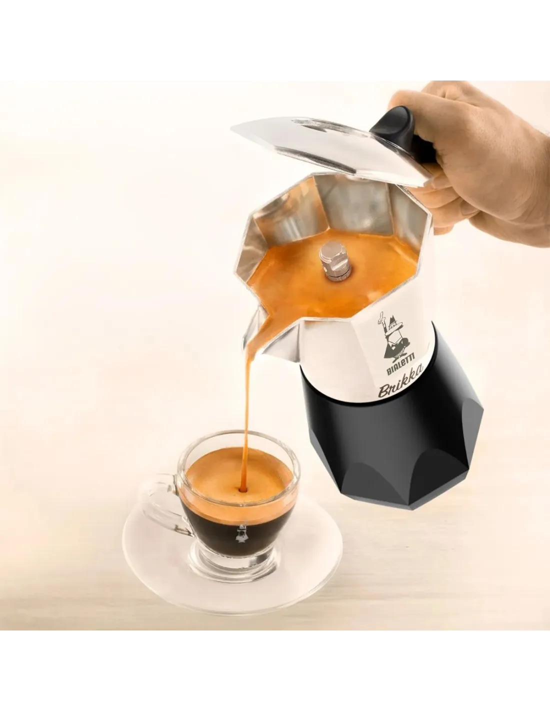 Bialetti Brikka je jedini aparat za moka kavu koji je unaprijeđen u odnosu na druge patentiranim ventilom zahvaljujući kojem aparat za moka kavu radi više kao aparat za espresso kavu .
