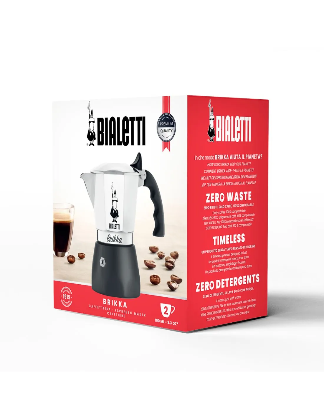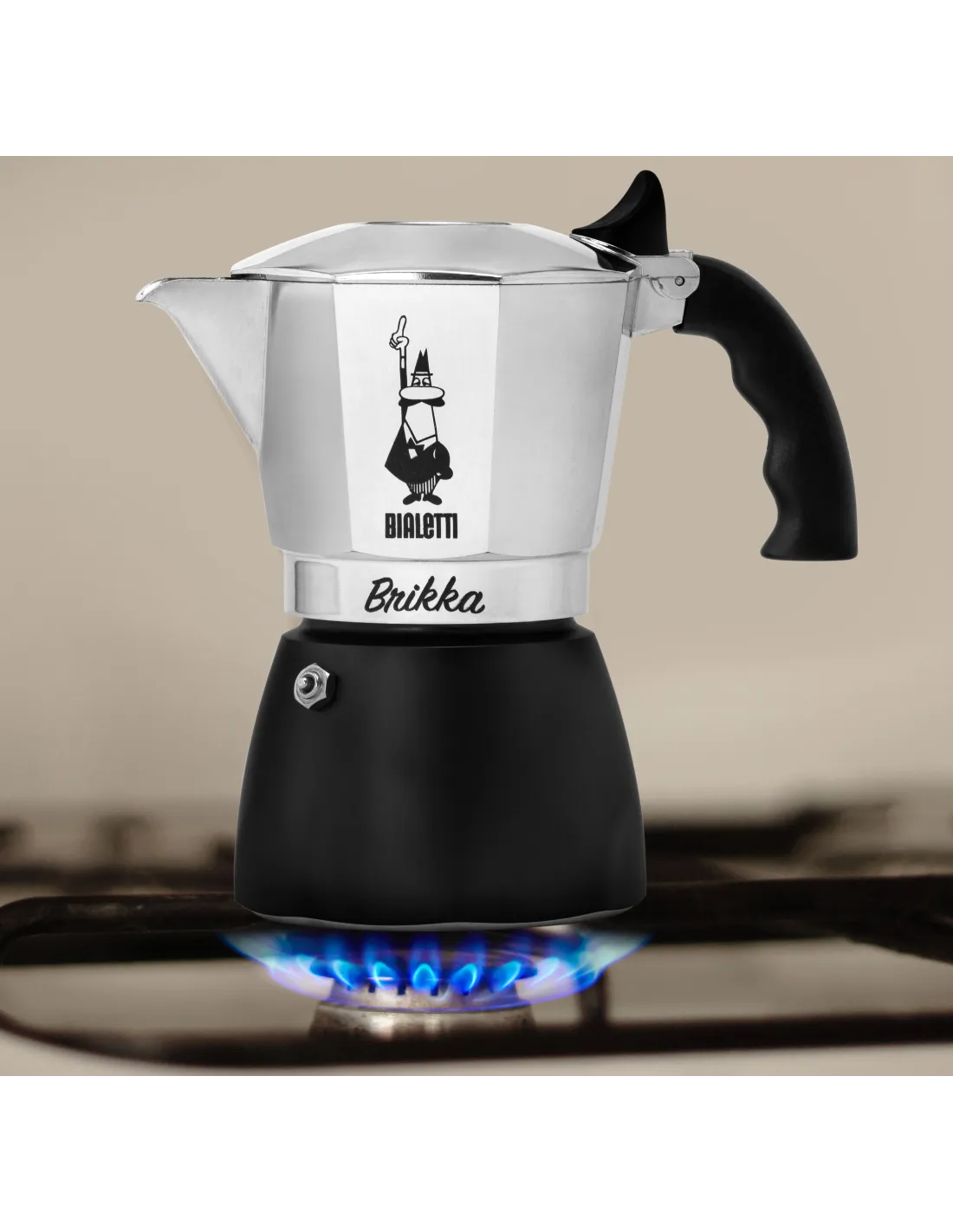 Bialetti Brikka je jedini aparat za moka kavu koji je unaprijeđen u odnosu na druge patentiranim ventilom zahvaljujući kojem aparat za moka kavu radi više kao aparat za espresso kavu .