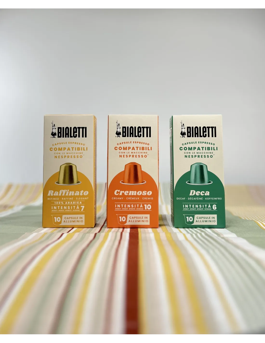 Bialetti Nespresso® Cremoso kapsule – talijanska kava bez kompromisa! Donosi bogat okus pravog talijanskog espressa s vrlo kremastim okusom. Zahvaljujući tamnom prženju, kava zadržava svoj intenzitet i punu aromu , tako da možete uživati u savršenoj šalici u bilo koje doba dana.