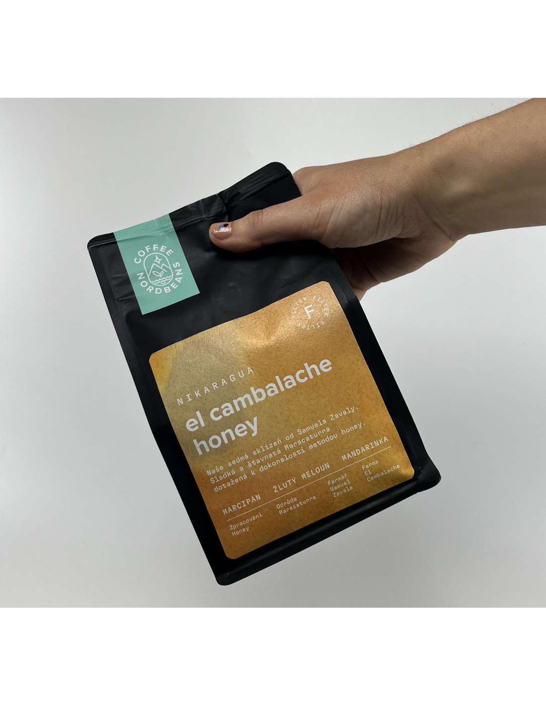 El Cambalache Honey – kava iz Nikaragve (farma El Cambalache, honey metoda) s izraženim notama marcipana, žutog dinje i mandarine.