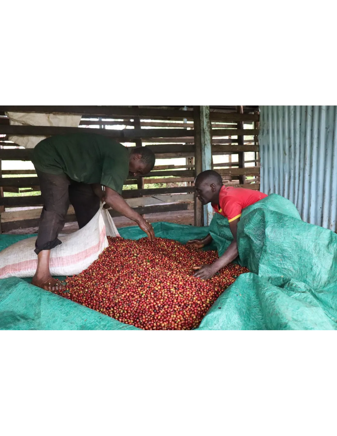 Zpracovatelský závod Mutitu funguje už od roku 1963. V dnešní době zajisťuje zpracování pro 1250 členů kooperativy, kteří ovšem většinou vlastní pouze přibližně pětinu hektaru půdy. Všichni však působí v samotném srdci slavného regionu Kirinyaga a to dokonce na úpatí druhé nejvyšší hory Afriky – Mount Kenya. Navíc díky vulkanickému podloží mají všechny místní kávovníky dostatečný přísun minerálních živin. Po tradičním keňském dvojitém promytí na vás tedy nyní čeká úžasný lot perlových zrnek s charakterem černého rybízu a citrusů. Samotná perlová zrnka vznikají tak, že se v třešni vyvine místo dvou zrnek pouze jedno, které je menší a kulatější – připomínající perličky! Mutitu jsme minulý rok sami vybrali v laboratoři Dormans Coffee v Nairobi. Díky vakuovému balení zeleného zrna je stále stejně šťavnatá, jako když jsme ji ještě v Keni poprvé ochutnali.