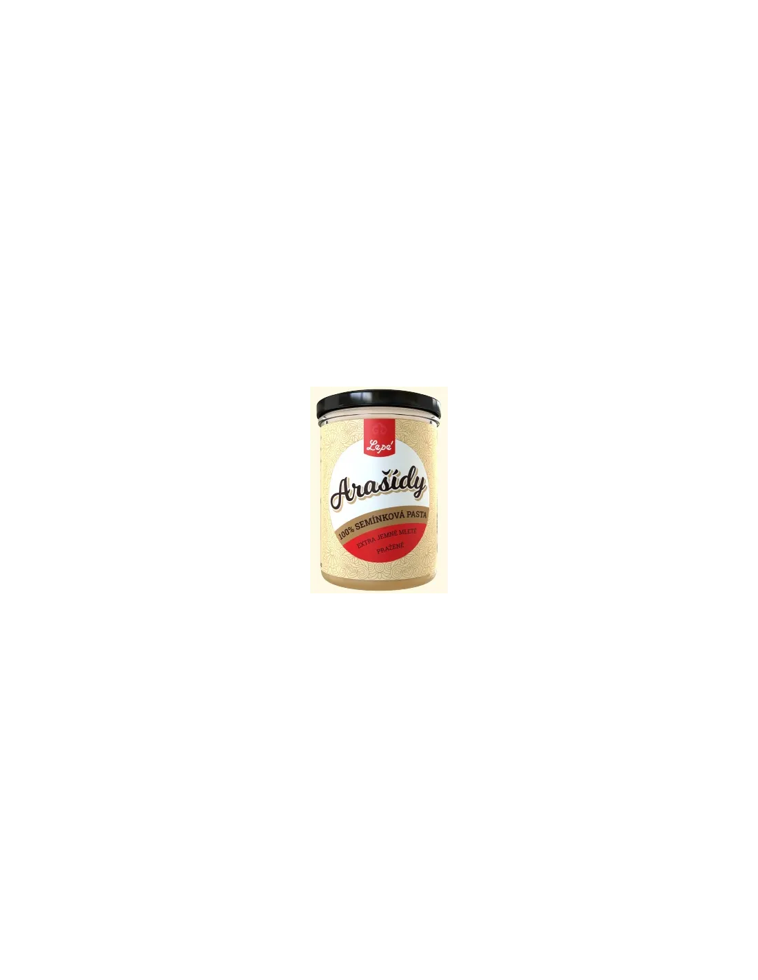 Extra jemně mletá arašídová pasta vyrobená pouze z pražených arašídů. Neobsahuje žádný přidaný olej, cukr ani sůl. Oproti běžnému arašídovému máslu má jemnější texturu a čistou chuť.
