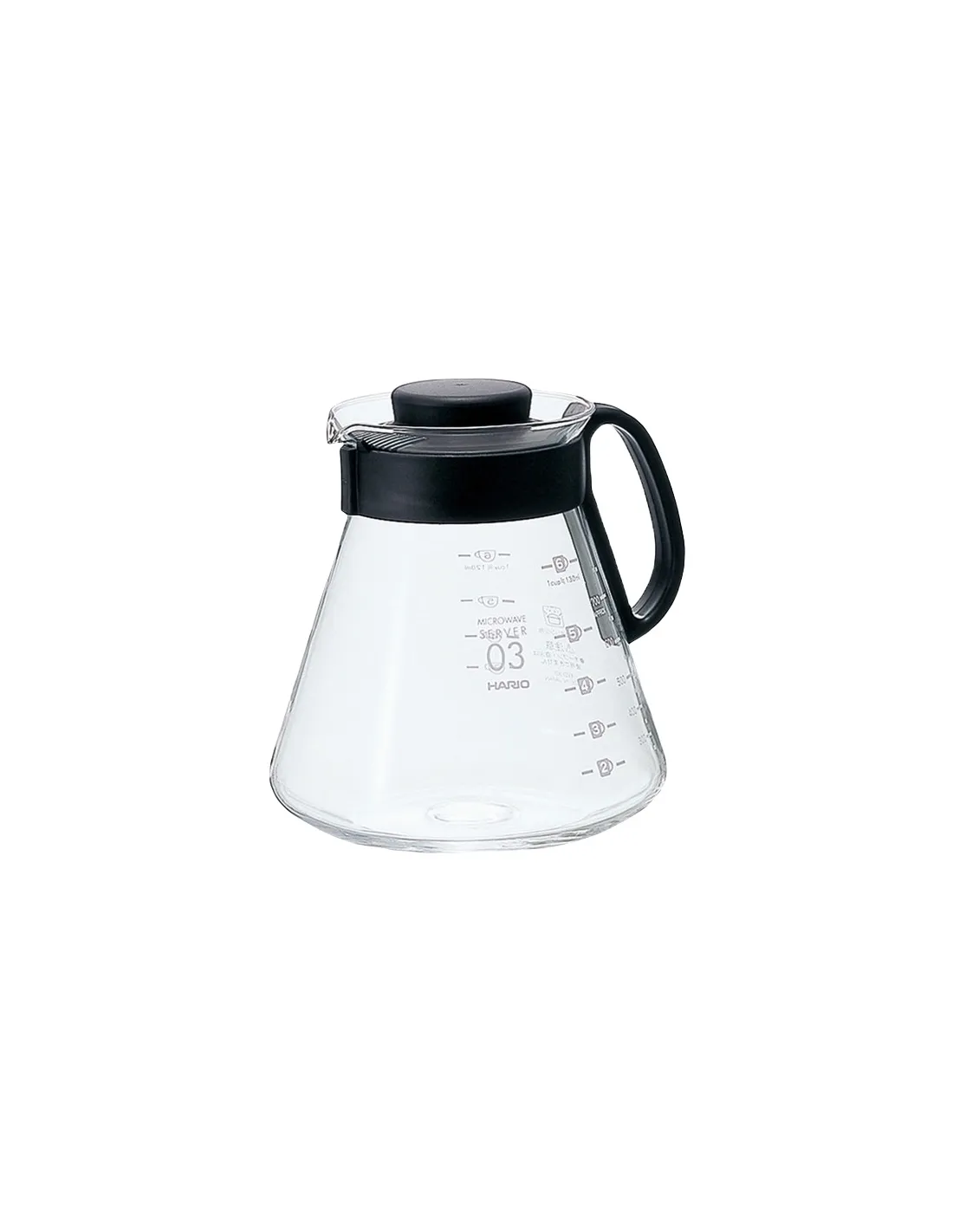 Stakleni džezva Hario V60 Range Server 800 ml od stakla otpornog na toplinu za profesionalno posluživanje svježe kave. Pogodno i za mikrovalnu pećnicu.
