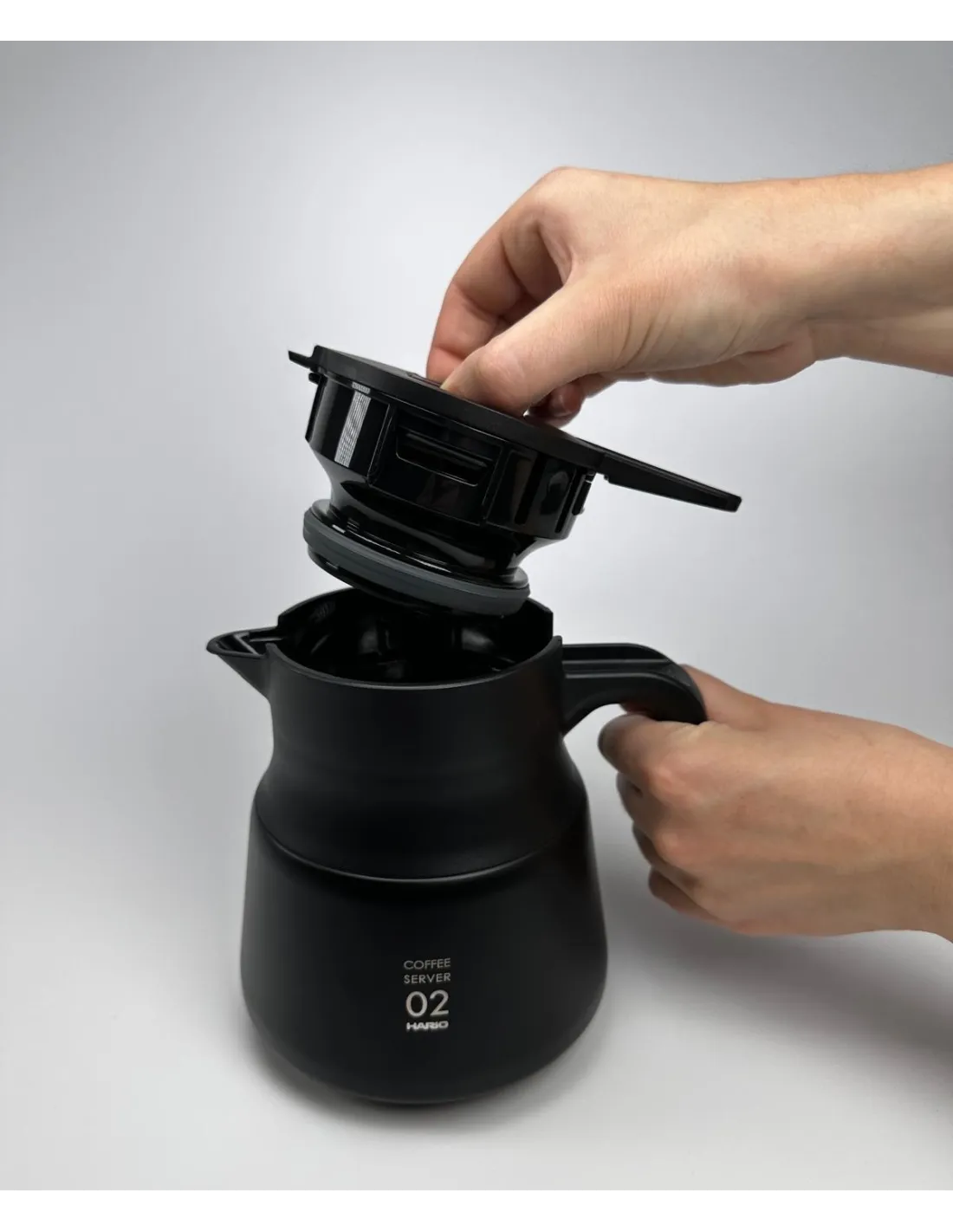 Napokon imamo termos posude za posluživanje Hario V60 kapaljki. Dvostruke stijenke izrađene od nehrđajućeg čelika idealne su za održavanje temperature vašeg pića do 60 minuta , čak i do 90 minuta nakon predgrijavanja vrućom vodom. Ovi praktični i dizajnerski poslužitelji imaju protočni poklopac s otvorom na polugu , tako da ostaju topli dok ne budete spremni za točenje.