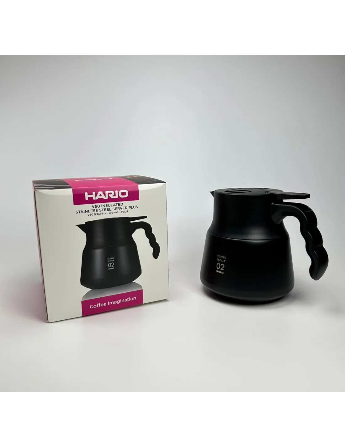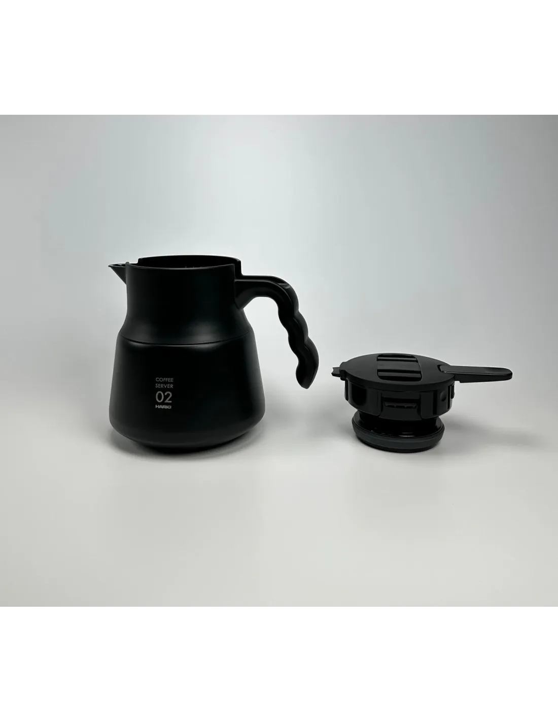 Dvostruko vakumirano termo kuhalo za vodu Hario V60 Thermo server od nehrđajućeg čelika za profesionalno posluživanje svježe i tople kave ili drugih napitaka. Zapremina: 600ml.