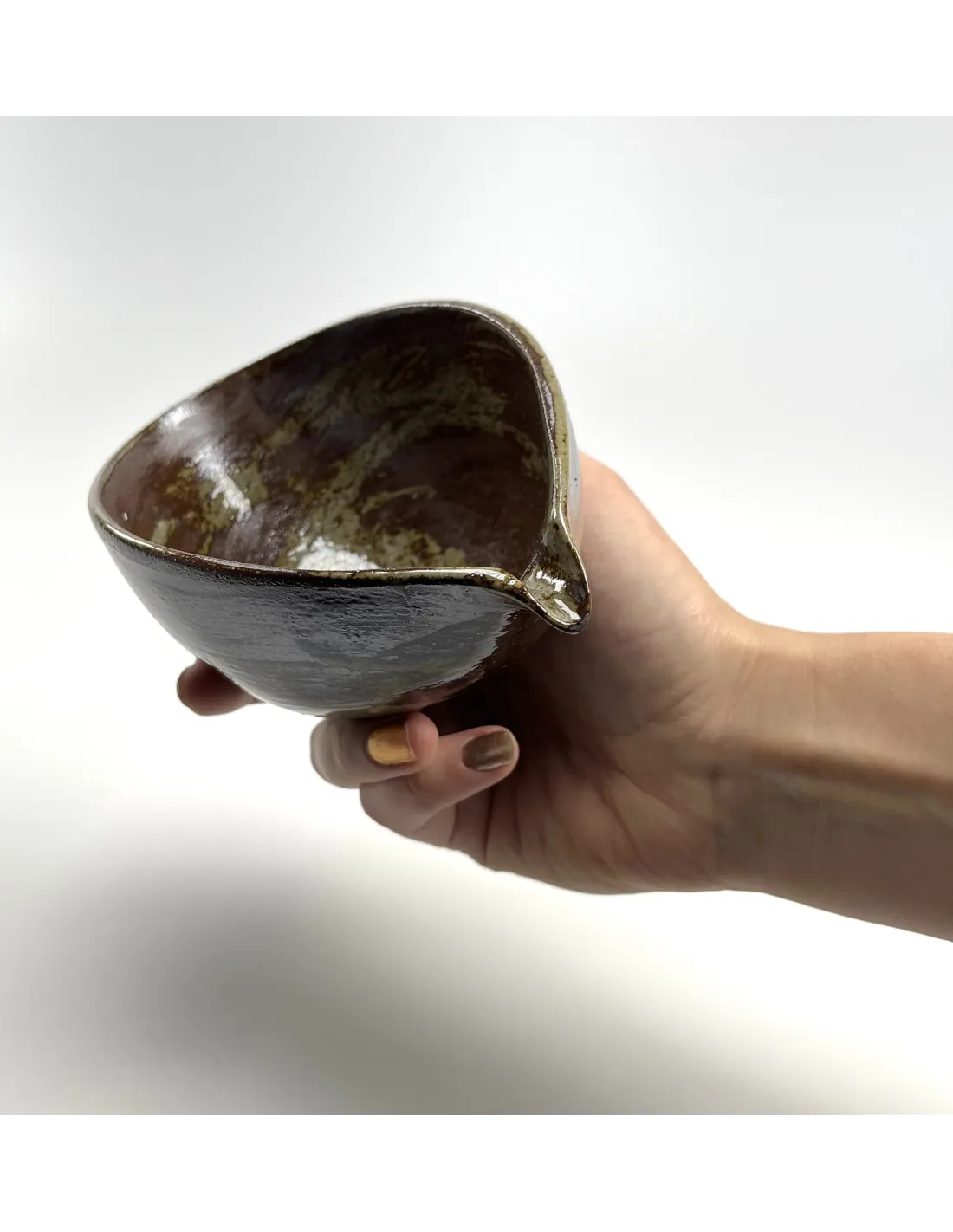 Kaffia Chawan je japanska ručno izrađena retro keramička zdjela od grube gline, idealna za pripremu Matcha čaja. Omogućuje savršeno miješanje čaja s vodom, osiguravajući optimalan okus. Zahvaljujući dizajnu i kvalitetnoj izradi, savršen je izbor za ljubitelje čaja koji traže autentične i estetski privlačne alate za svoju čajnu ceremoniju.