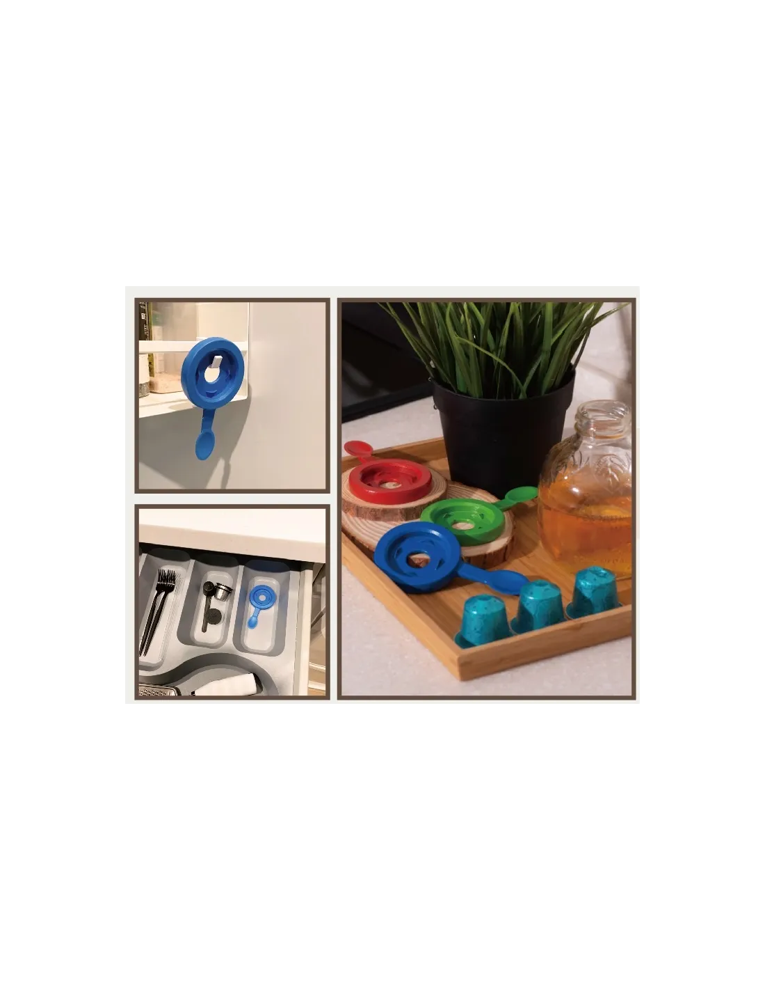 Vrlo je jednostavan za korištenje i ima samo 4 koraka. 1) Postavite otvarač na ravnu stranu iskorištene kapsule. 2) Okrenite nekoliko puta u smjeru kazaljke na satu iu suprotnom smjeru. 3) Izvadite otvarač iz kapsule. 4) Žličicom očistite kapsulu od iskorištene kave. Gotovo :)