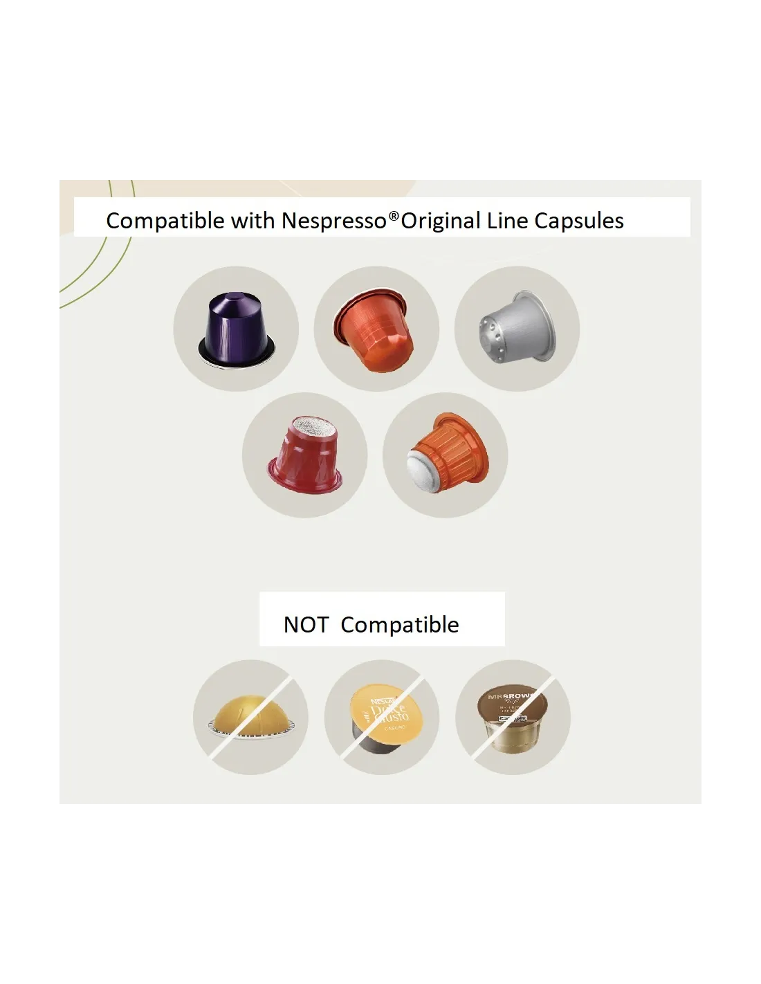 Kompatibilnost : s originalnim asortimanom Nespresso ® Original kapsula. (NIJE KOMPATIBILNO s Vertuo Nespresso ® asortimanom i kapsulama drugih marki)