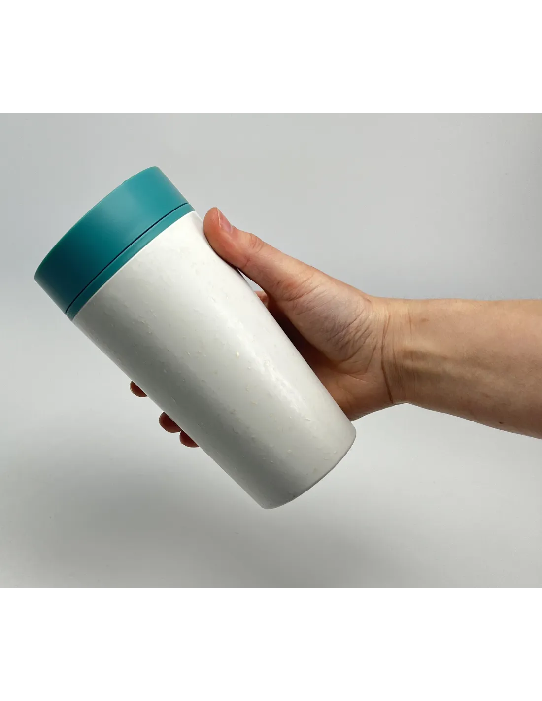 Elegantna rccup šalica izrađena od recikliranih materijala, praktična i udobna za korištenje . Elegantna kombinacija boja krede i akvamarina za održiv i moderan dizajn.