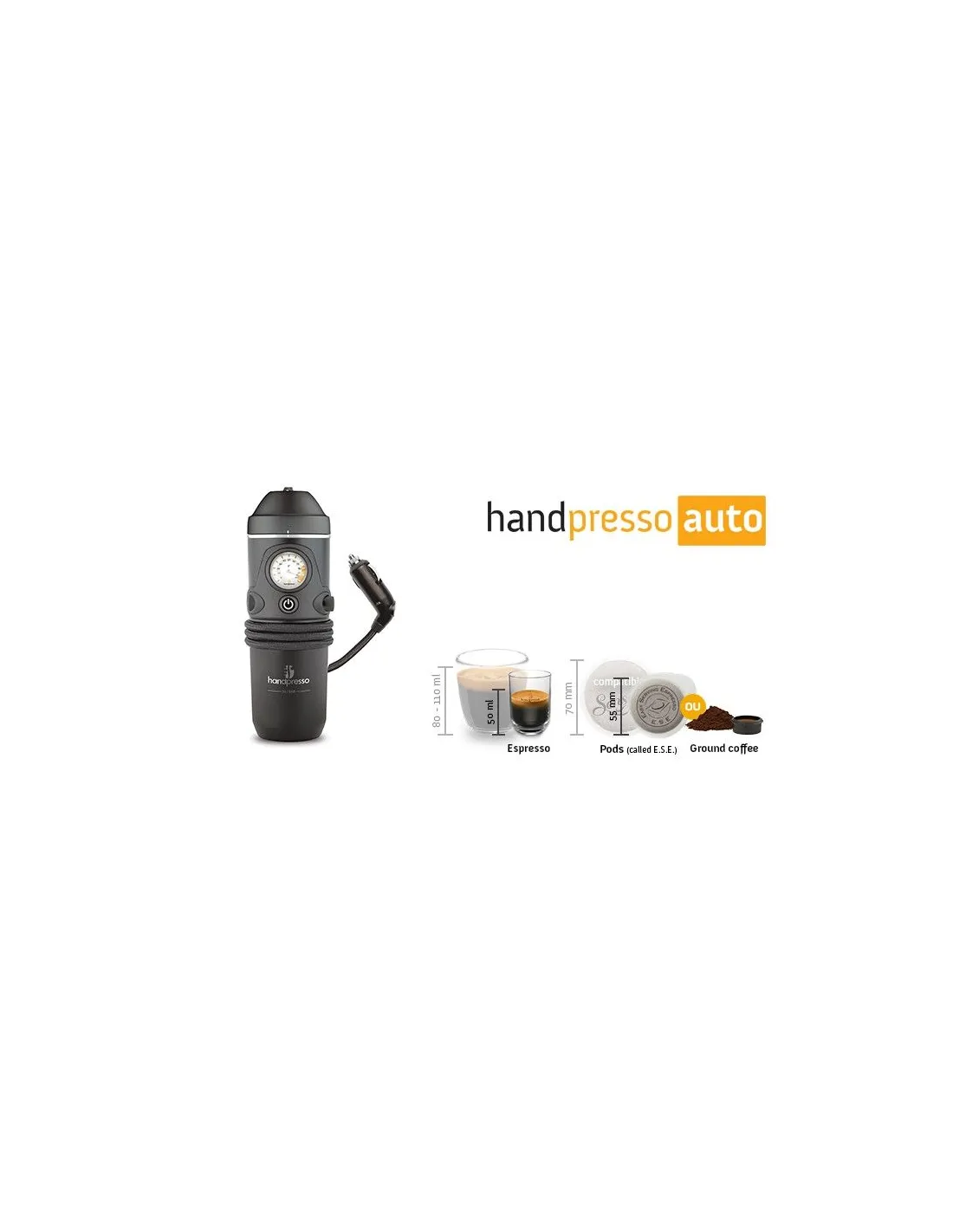 Handpresso Auto Hybrid je cestovní kávovar, díky kterému si můžete oblíbené espresso dopřát při každém výletu autem. Kávovar je vybaven koncovkou do klasické 12 V zásuvky na zapalovač, proto nepotřebujete ani horkou vodu.