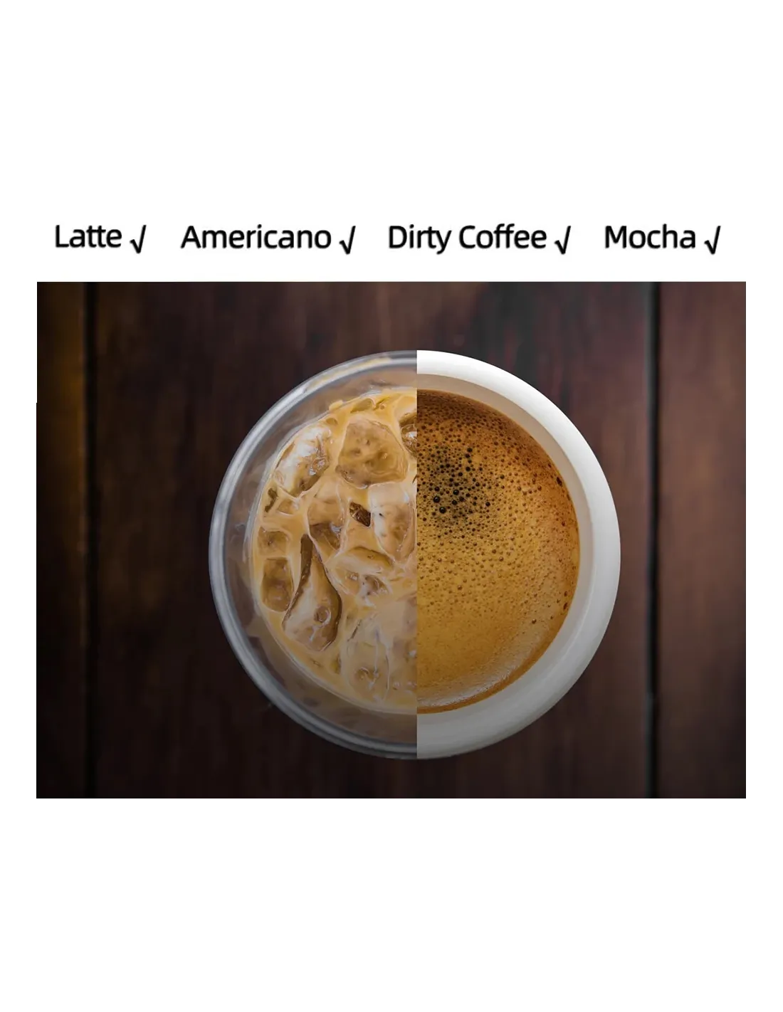 Za pripremu kave trebat će vam topla/hladna voda, mljevena kava ili kapsula i vaše ruke. Nakon ulijevanja kave ili umetanja kapsule , ulijte vodu i sve dobro zatvorite. Priprema je ručna . Zatim ručnom pumpicom stvarate potreban pritisak za postizanje zlatne ekstrakcije kave s bogatom pjenom . Na vama je hoćete li odabrati intenzivan stisak za savršeni espresso ili sporiji protok za bogati americano .